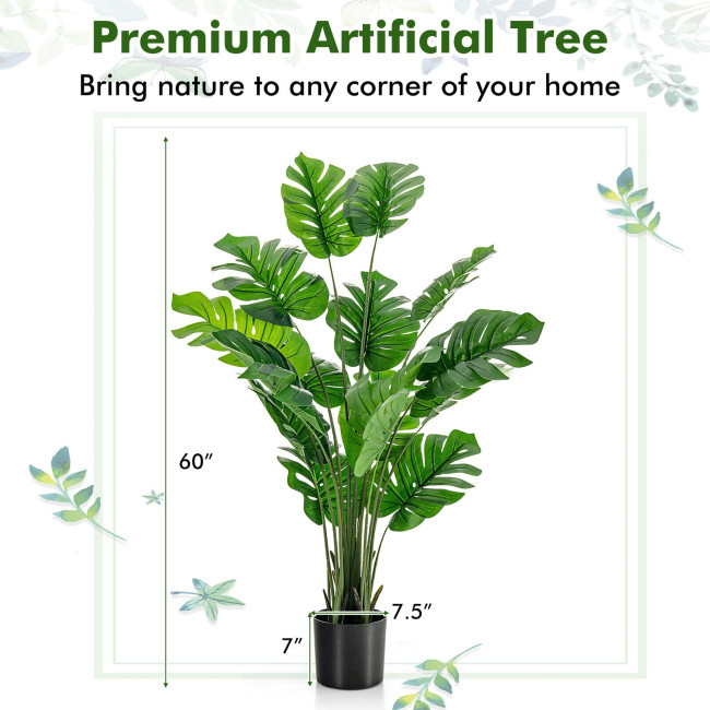 This 5 ft artificial monstera deliciosa plant comes with 15 large leaves and 15 sturdy trunks; helping create a dense and full appearance.