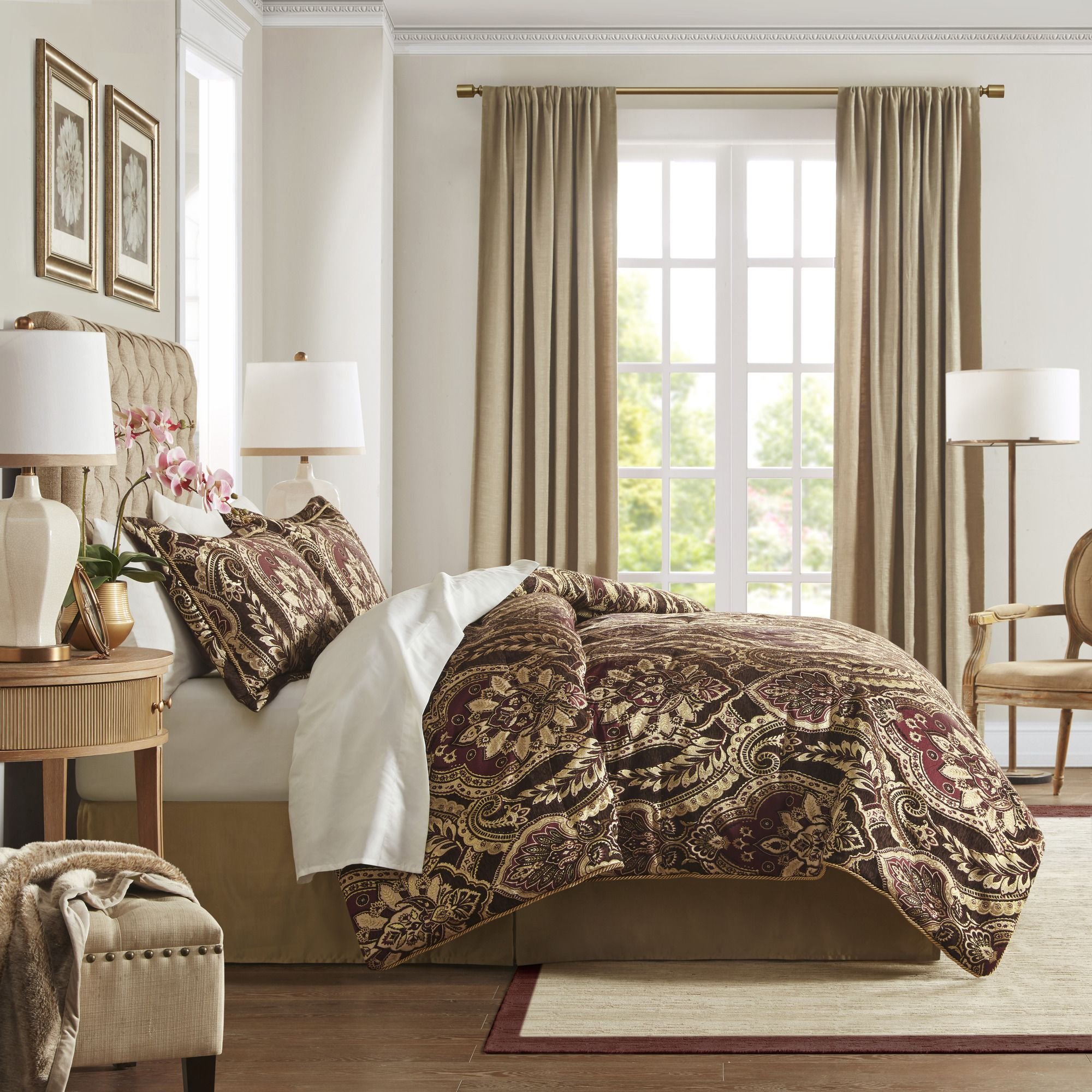 Inspired by the maximalist patterning and decor of the 17th century French royalty, the Julius comforter set is a true statement piece. An artful blend of soft chenille yarns mimic a vivid illusion of gold and add dimensions of luxury to the jacquard. The jewelry and painting inspired pattern exudes a regal color palette. Sleep like a royal in this lavish yet comfortable Julius comforter set.