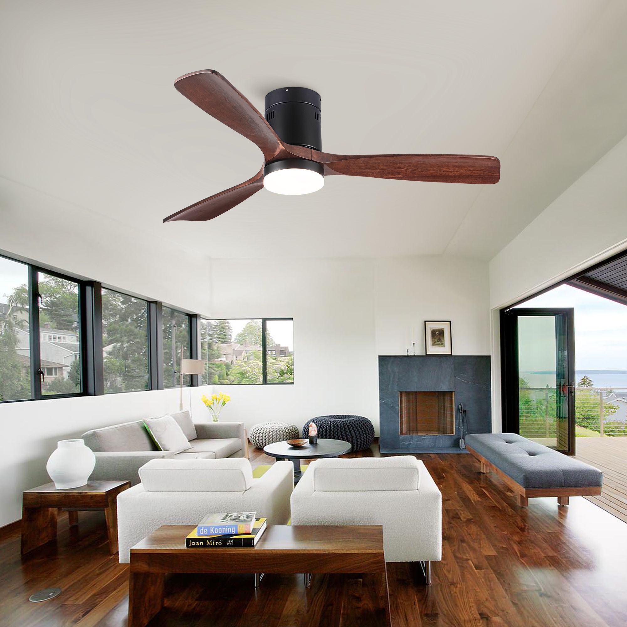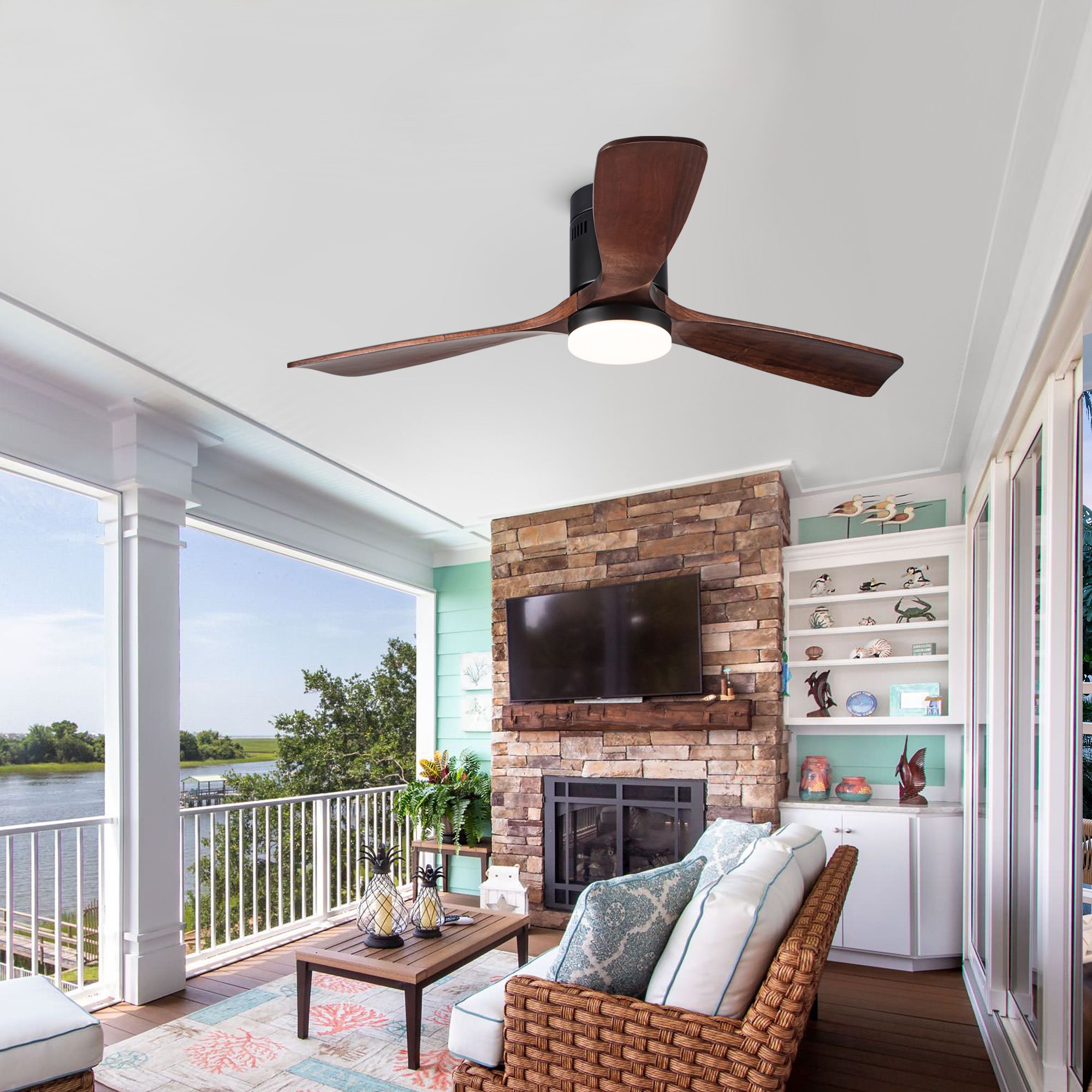 Home > 52 in Low Profile Dimmable Integrated Ceiling Fan with 3 Brown Solid Wood Blades