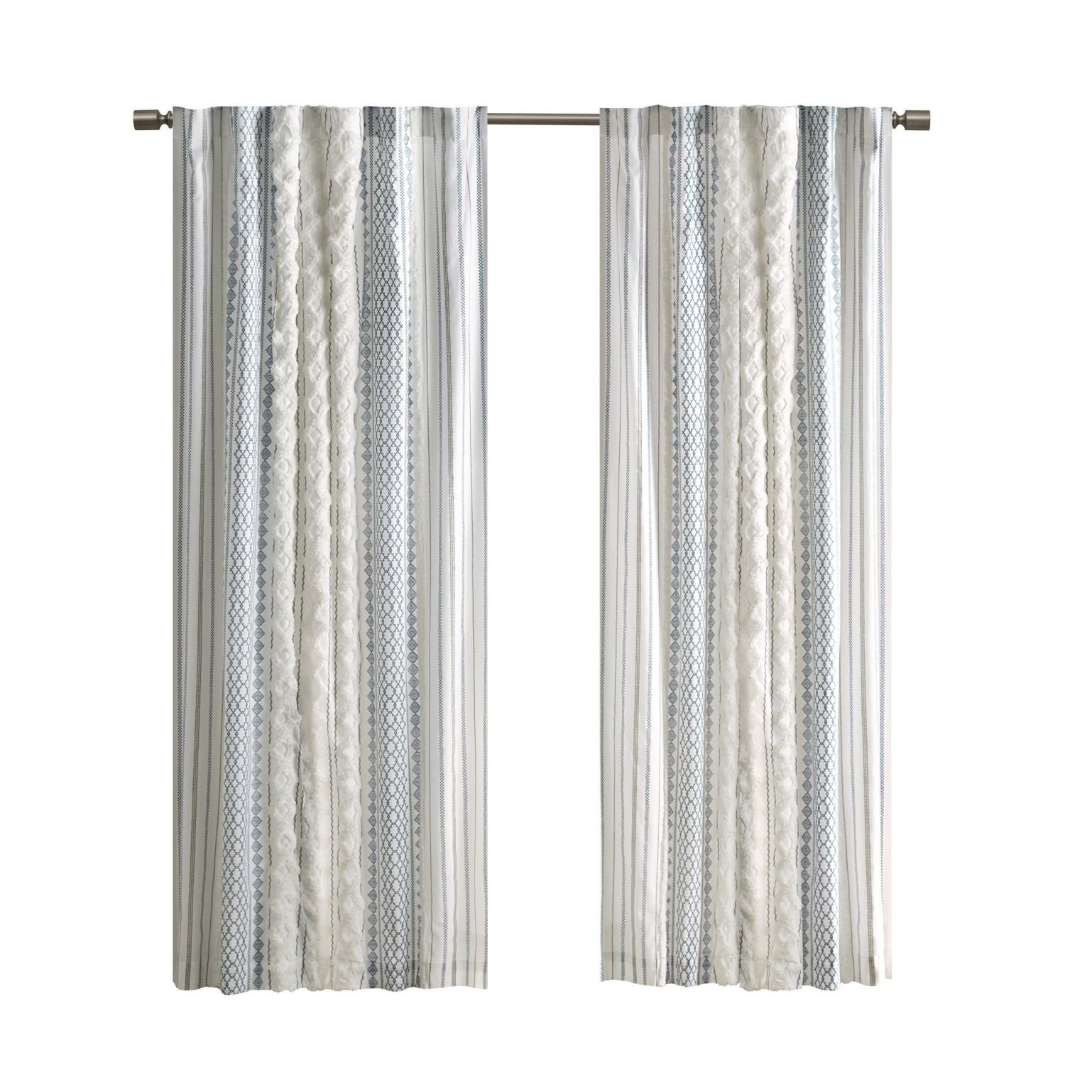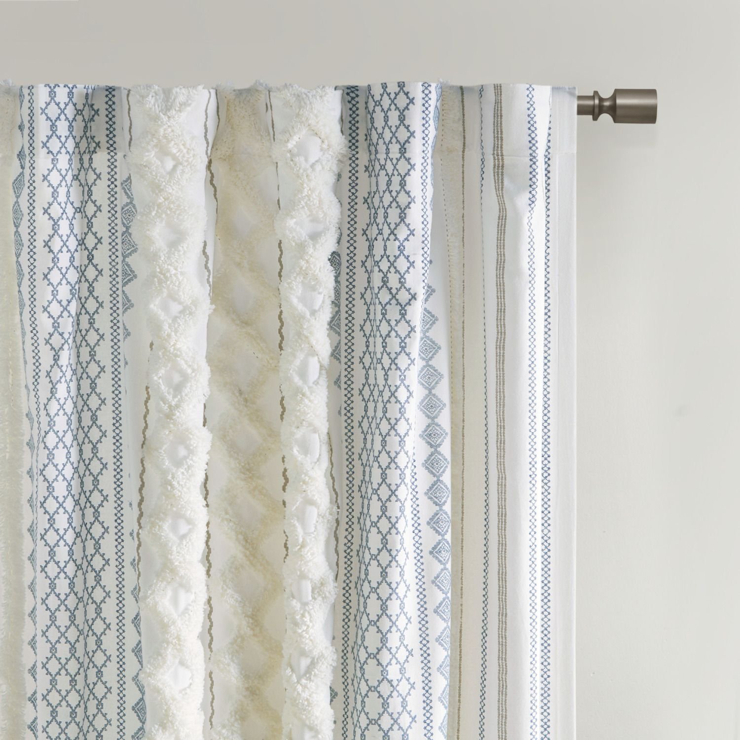 100% cotton printed with tufted chenille stripe trim window curtain panel