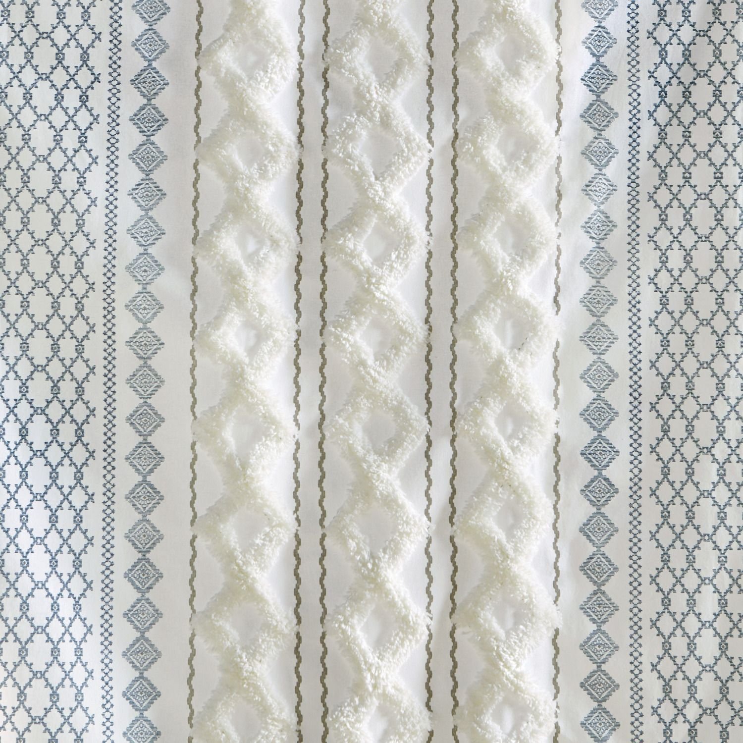 Cotton Printed Curtain Panel with Chenille Stripe and Lining 50x108"