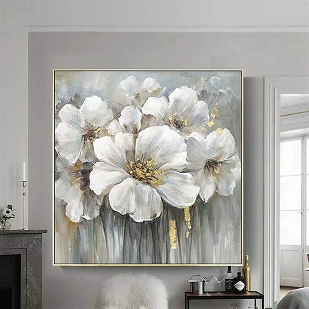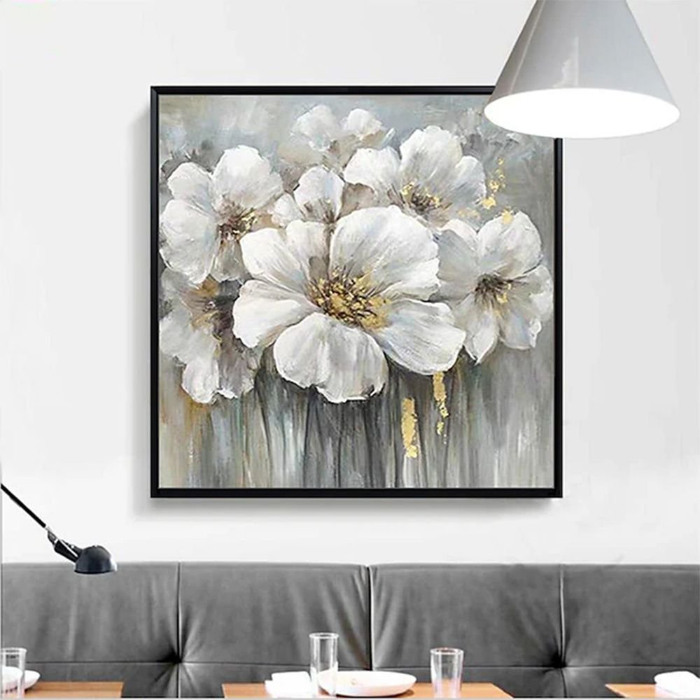 Home > Hand Painted Oil Paintings Hand Painted Square Floral / Botanical Pop Art Living Room Hallway Bedroom Luxurious Decorative Painting