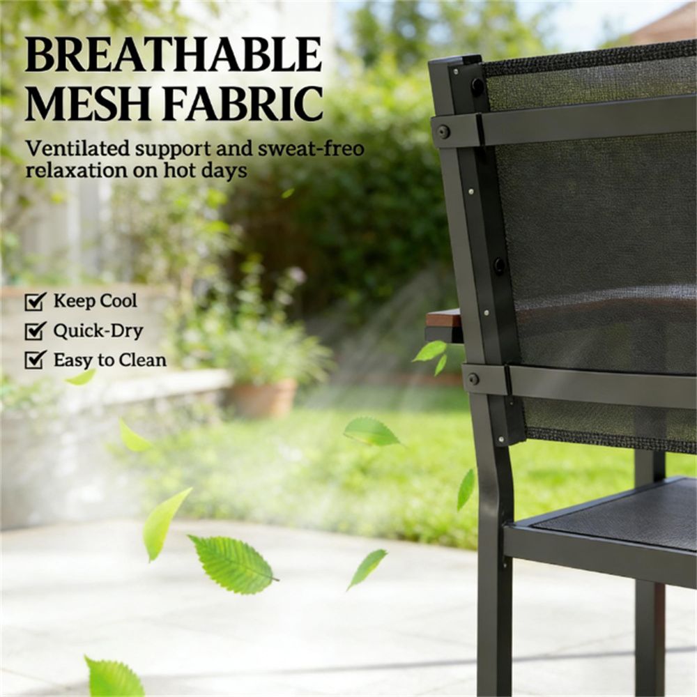 - Material: Steel, Acacia Wood, Breathable Mesh (100% Polyester)