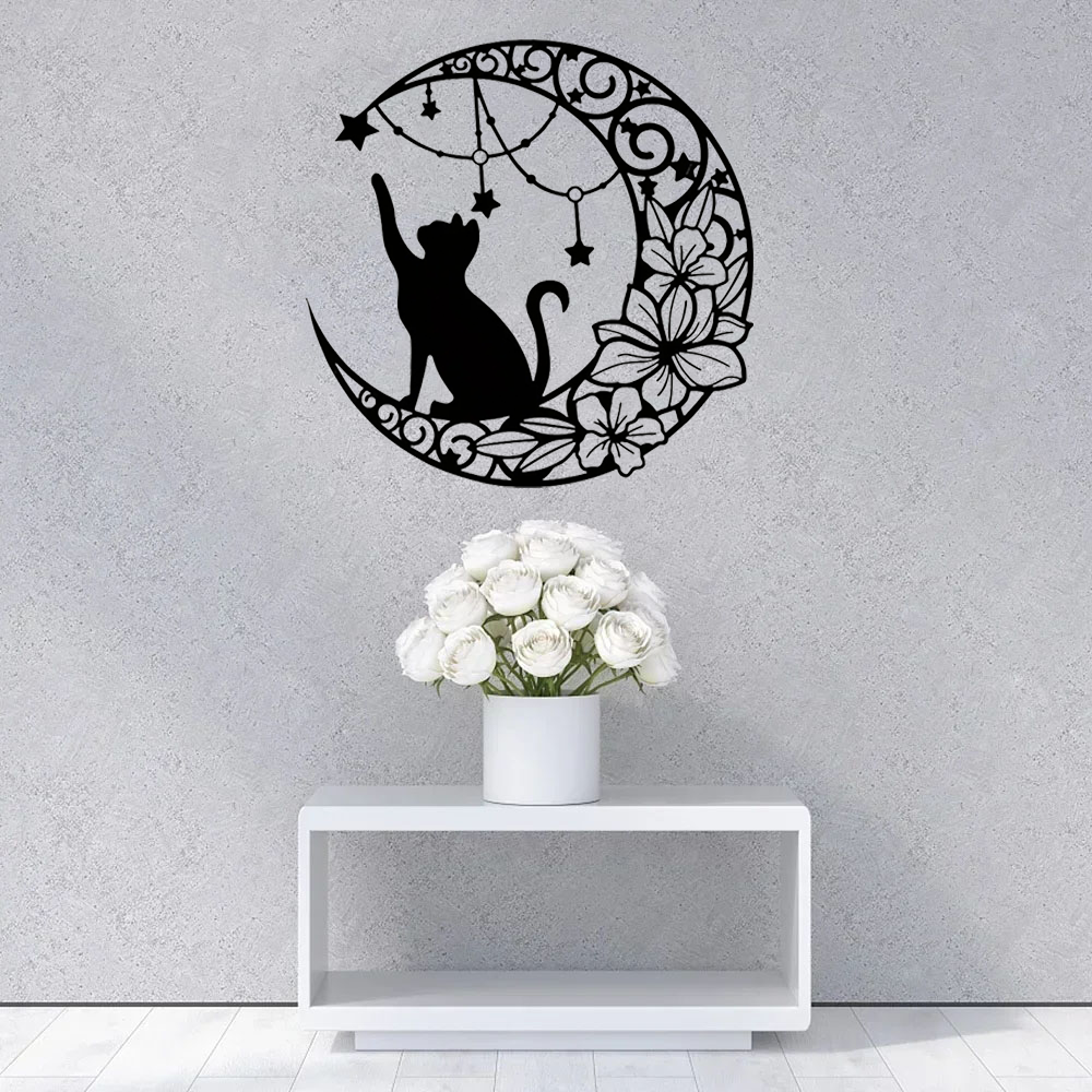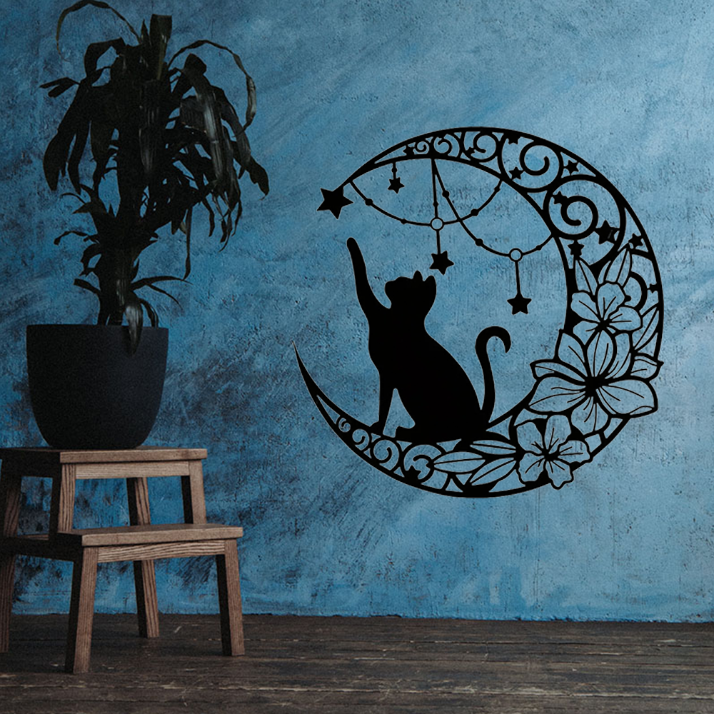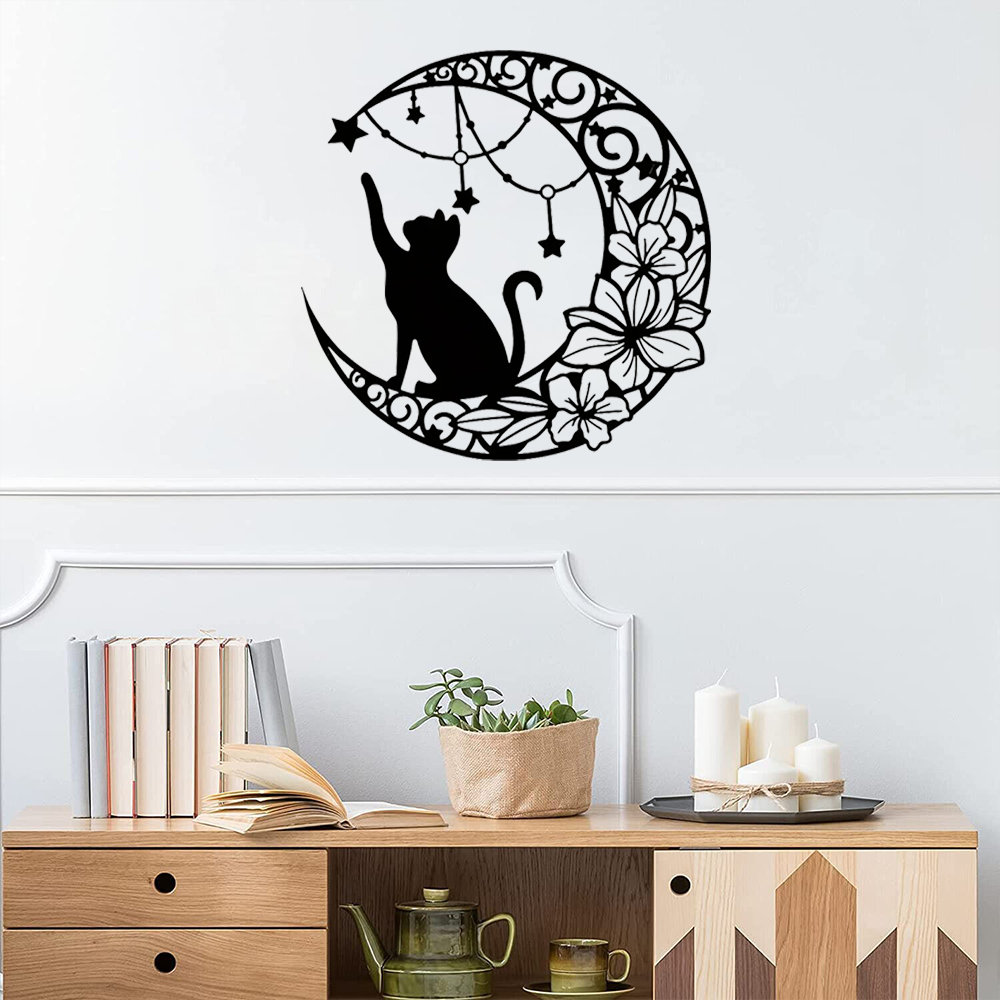 Home > Gothic Black Cat Metal Wall Art - Vintage Halloween Decorations