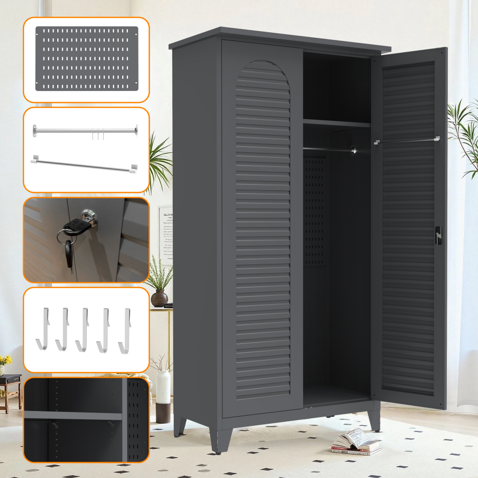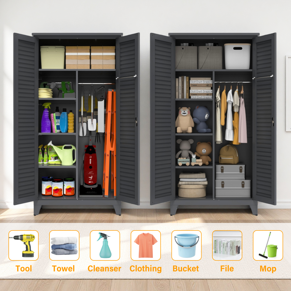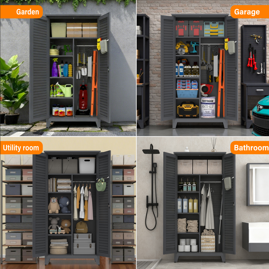 • 【Multi-scenario Applications】Boasting multi-scenario application, this tool cabinet fits perfectly in garages, workshops, warehouses, home basements, gardens, outdoor spaces and bathrooms. Ideal for tools, gardening gear, outdoor essentials and bathroom supplies, it meets diverse storage needs, bringing convenience and keeping spaces tidy wherever organized storage is required.