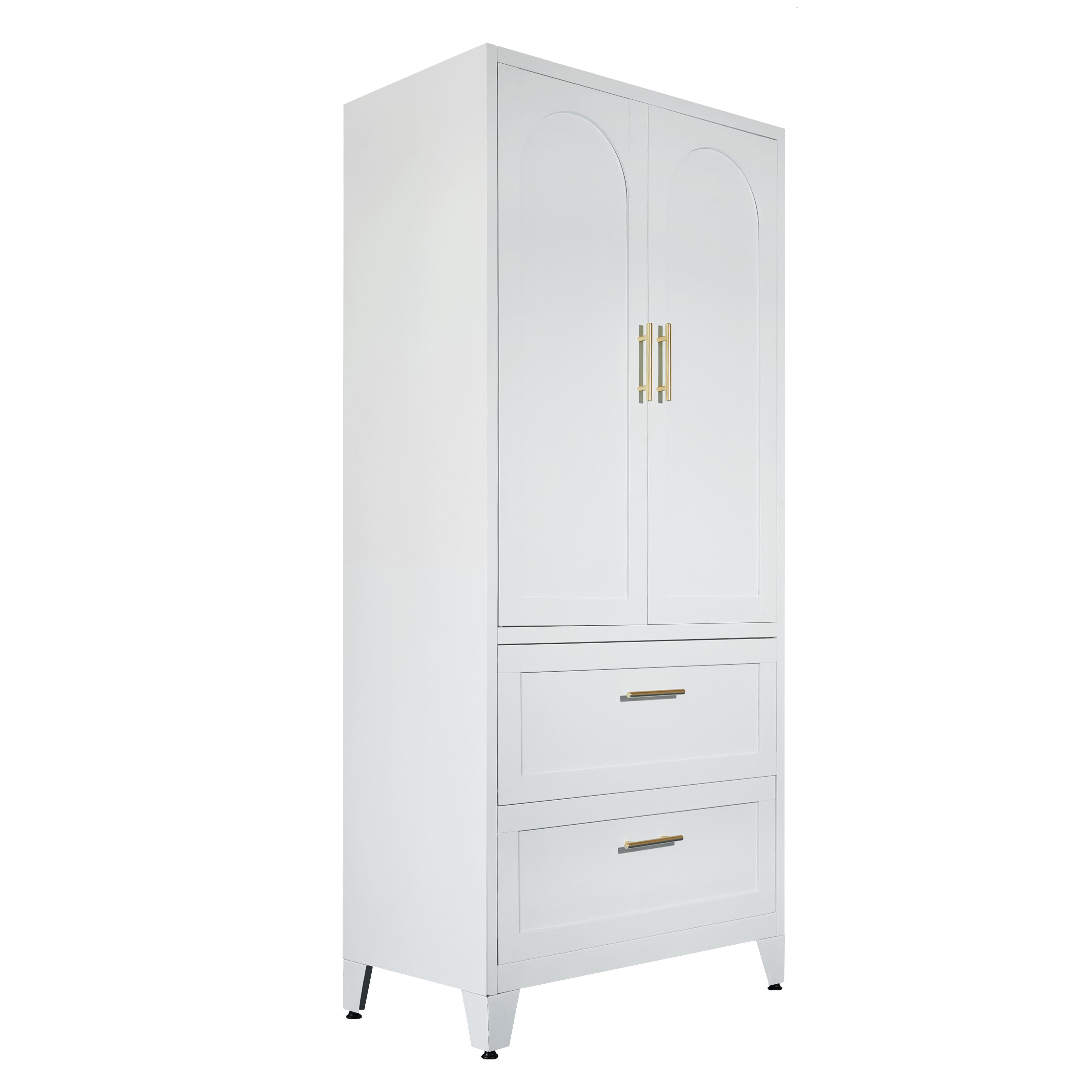 71inch Tall Metal Wardrobe Cabinet With 2 Drawers And Hanging Rod, 2 Doors Wardrobe Closet With Shelf For Bedroom, Office, Laundry Room,Entryway ,Foye