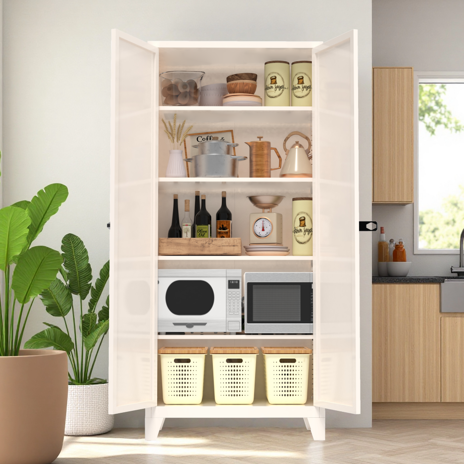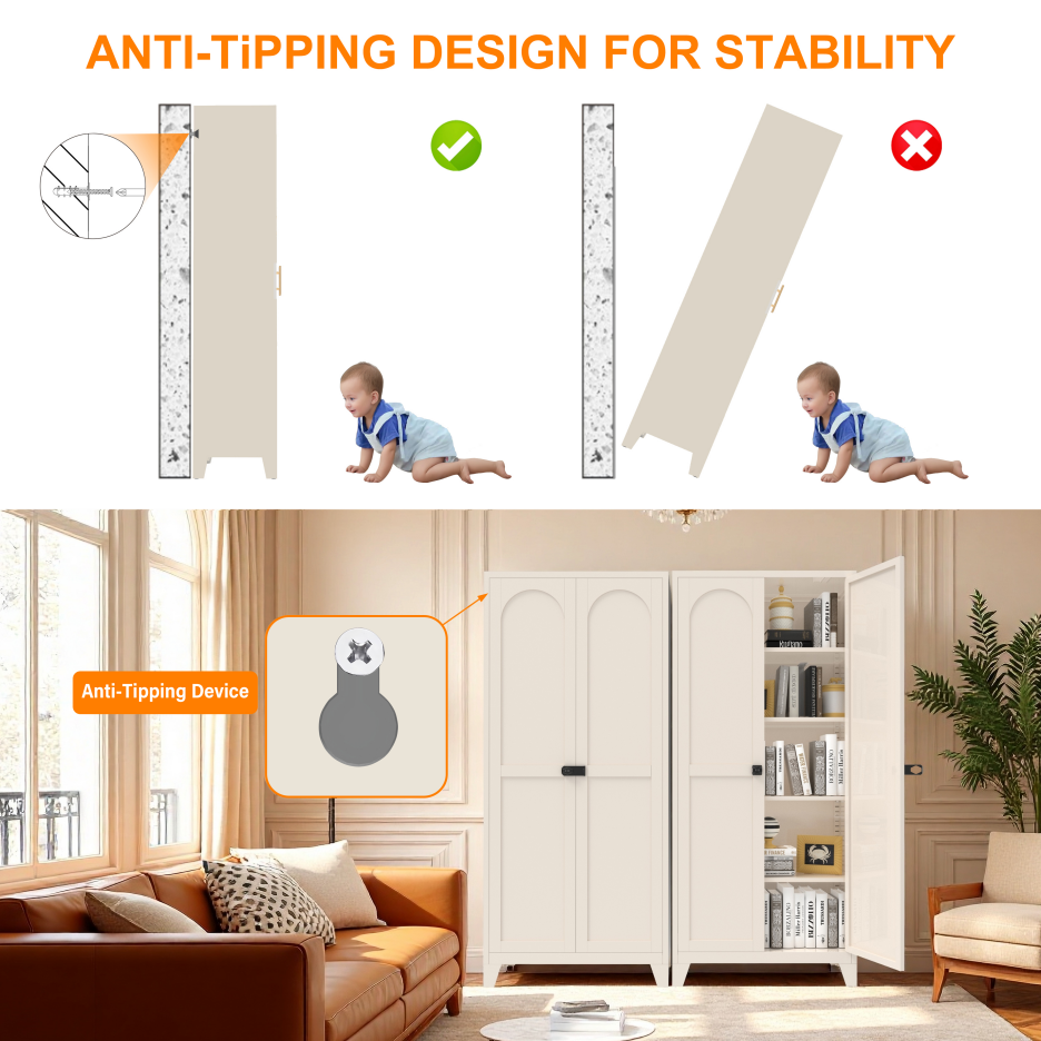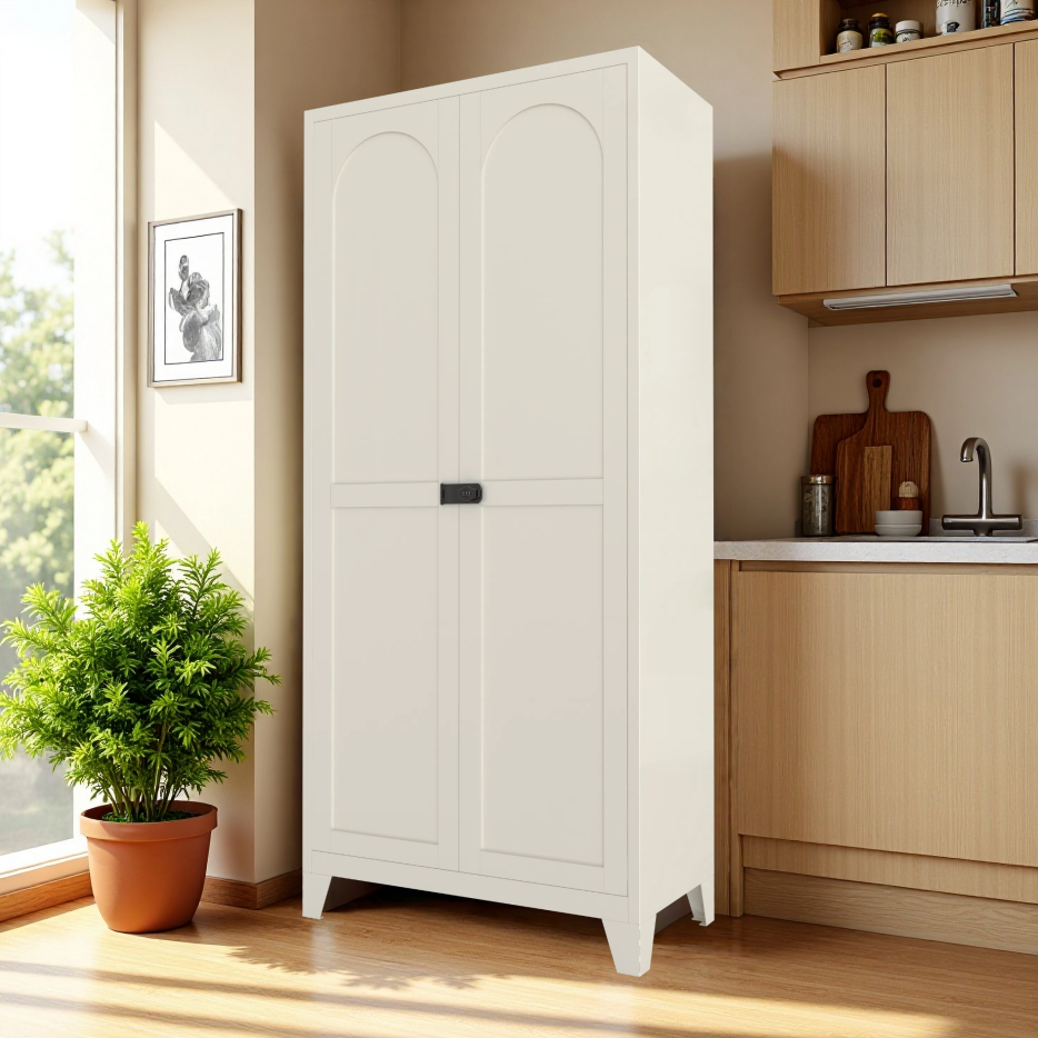 Product Name:71'' 2 Shapely Door Cabinet With Lock, Metal Storage Cabinet with Doors and Adjustable Shelves, for Kitchen, Bedroom, Living Room(Beige)
