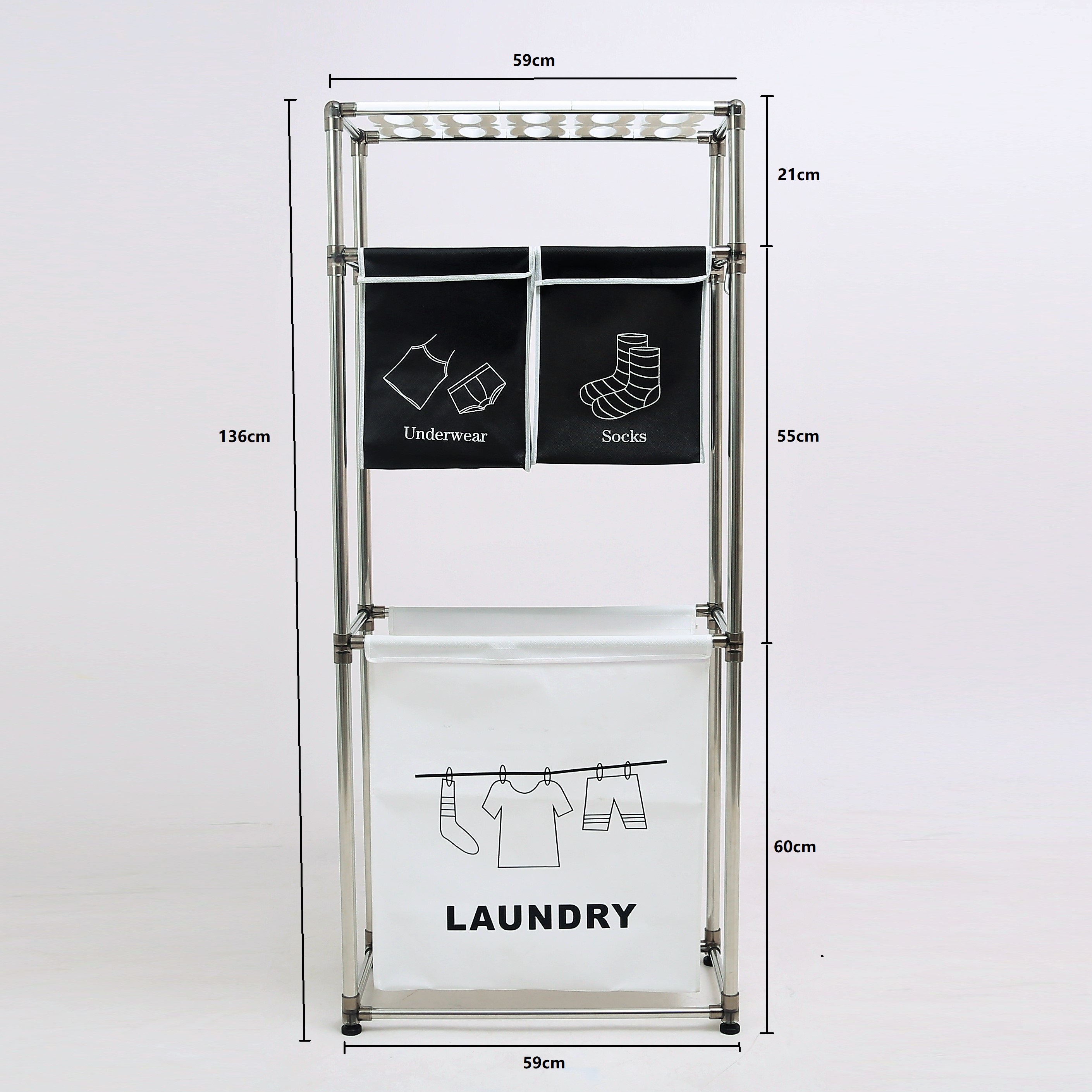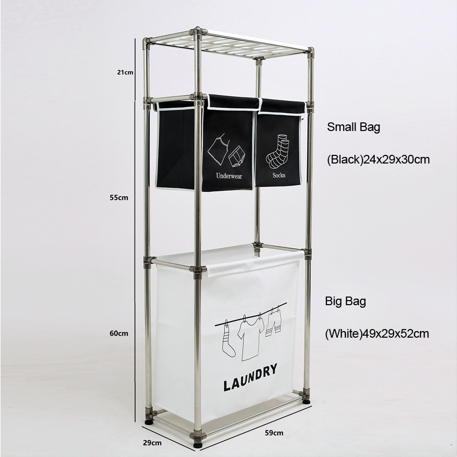 • 3 pull-out oxford bags provide you with convenience, you can sort dirty clothes by color or type. big bag has a capacity of 100L, which is enough for a family. The bottom of the bag is equipped with a bottom plate to prevent sagging and keep it from deforming.