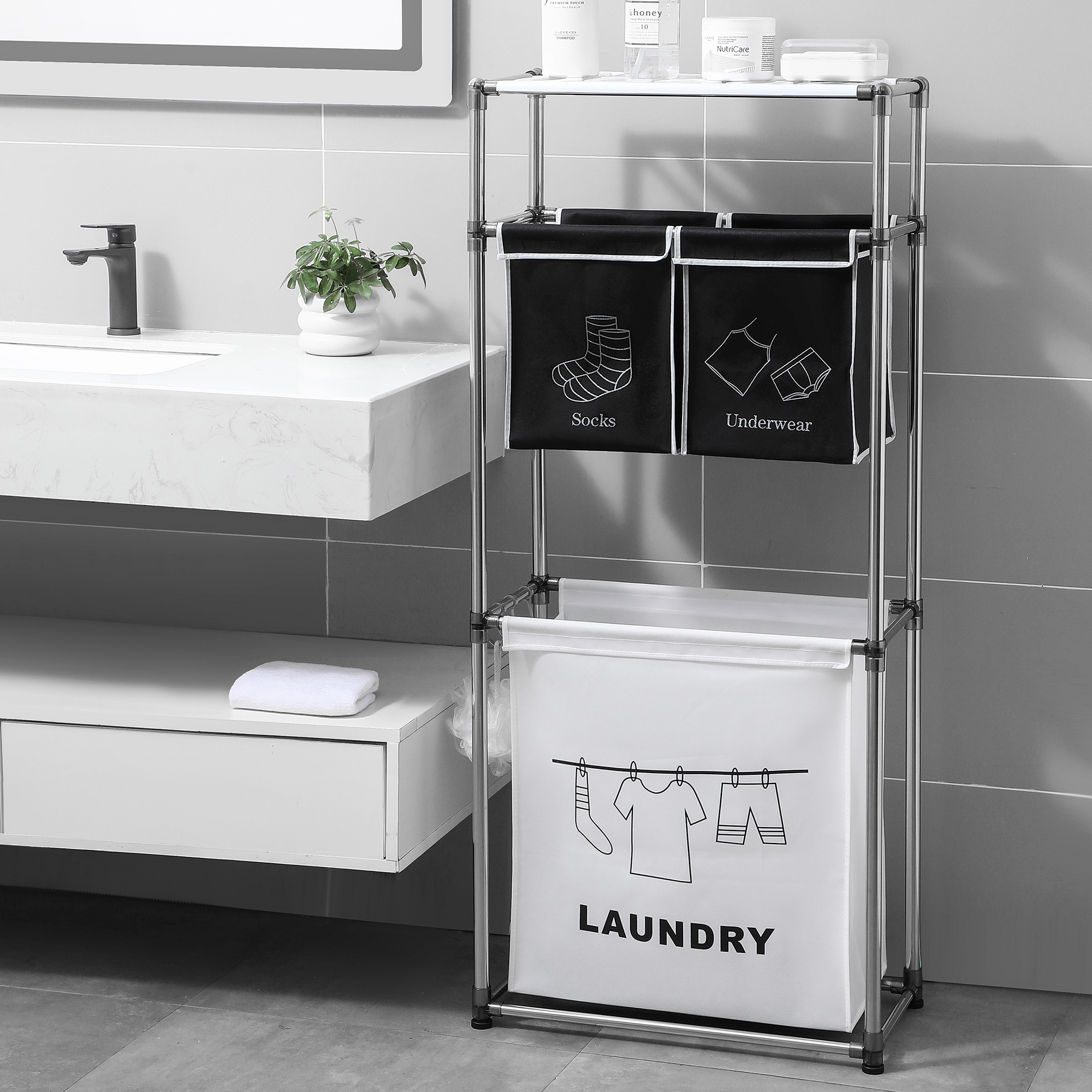 Home > Laundry Hamper 3 Tier Laundry Sorter With 4 Removable Bags For Organizing Clothes, Laundry, Lights, Darks ,Three Hooks