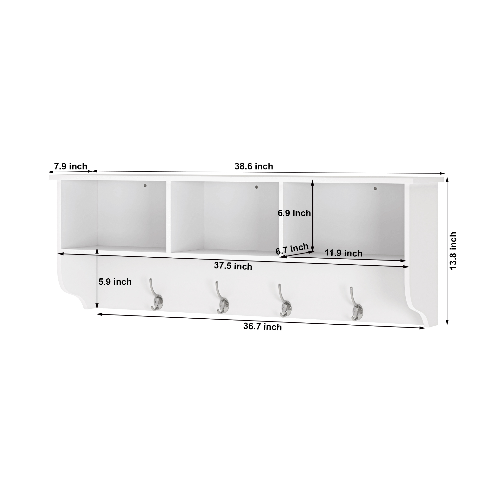 White Entryway Wall Mounted Coat Rack With 4 Dual Hooks Living Room Wooden Storage Shelf