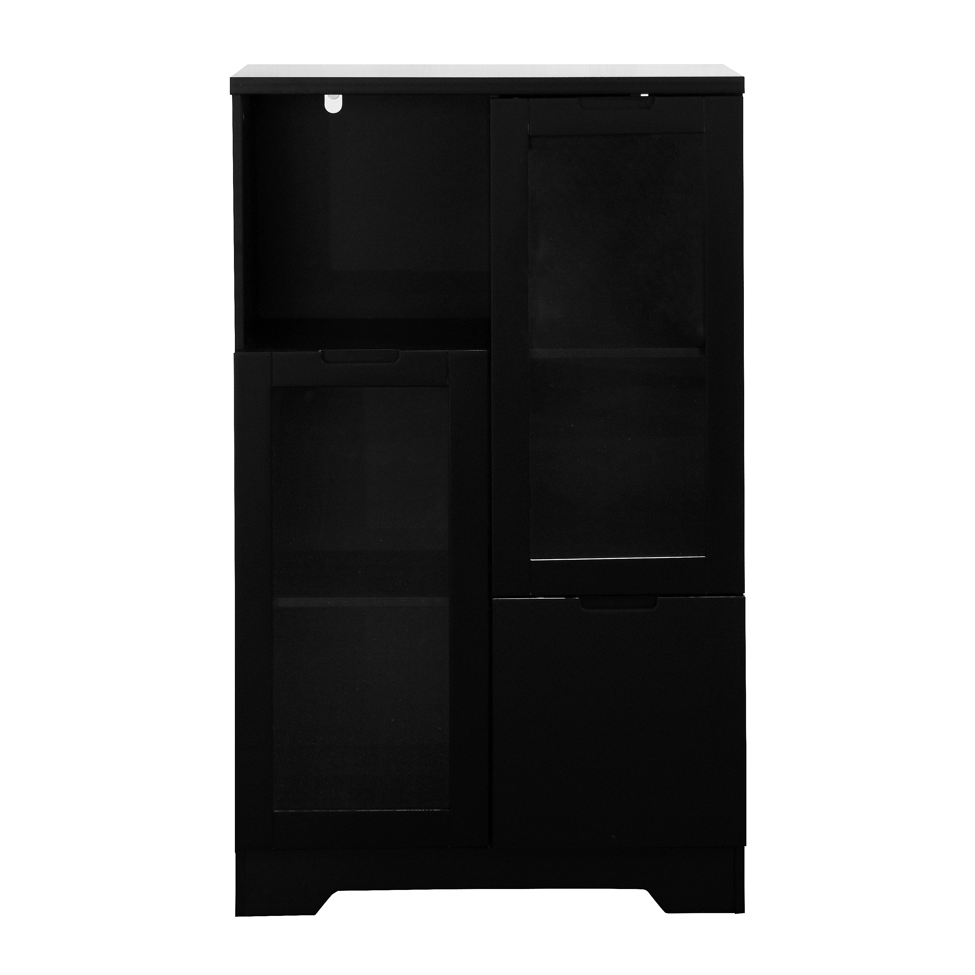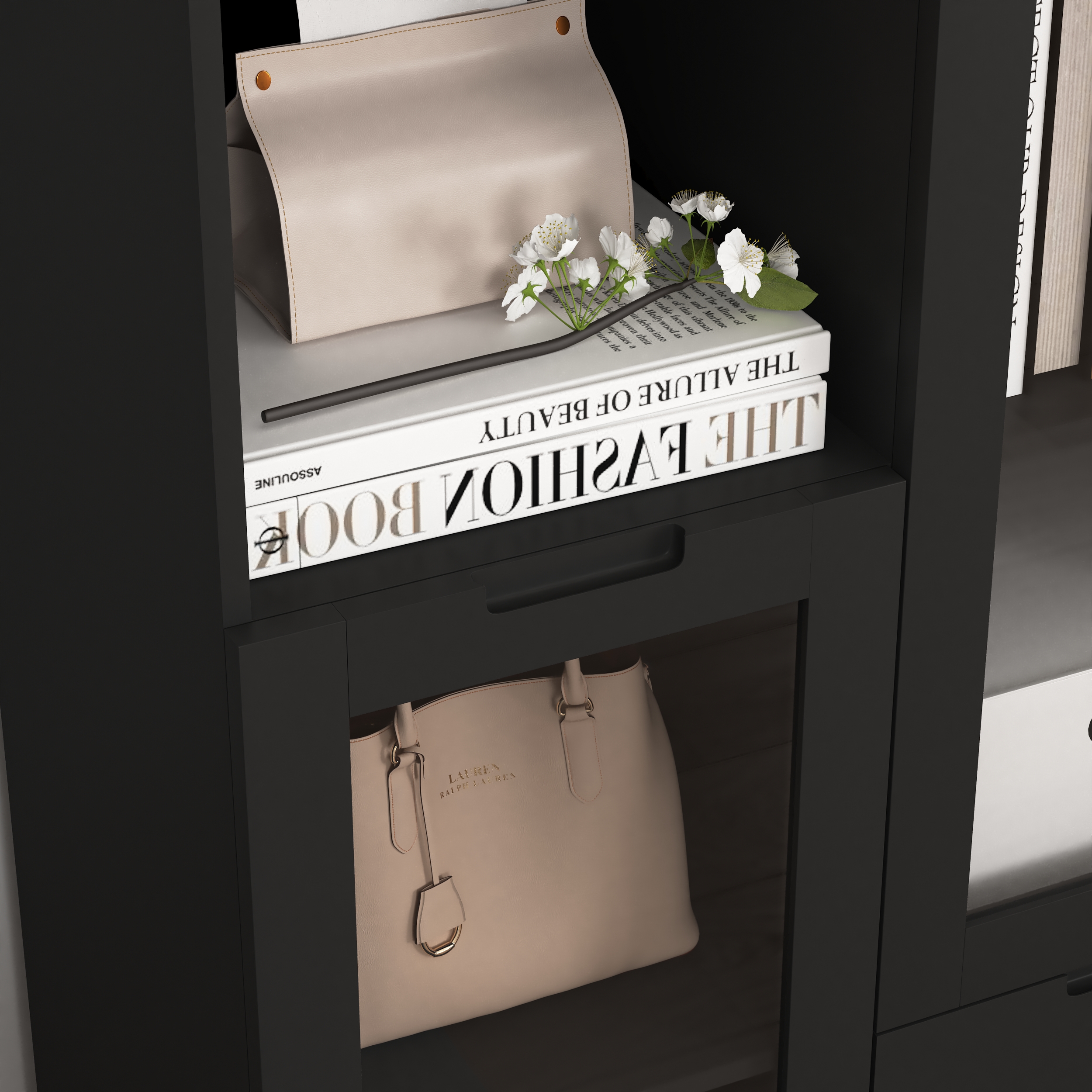 Home > MDF Painted Cabinet With Glass Doors And Drawer, Open Storage Space, Black ,Bedroom, Living Room