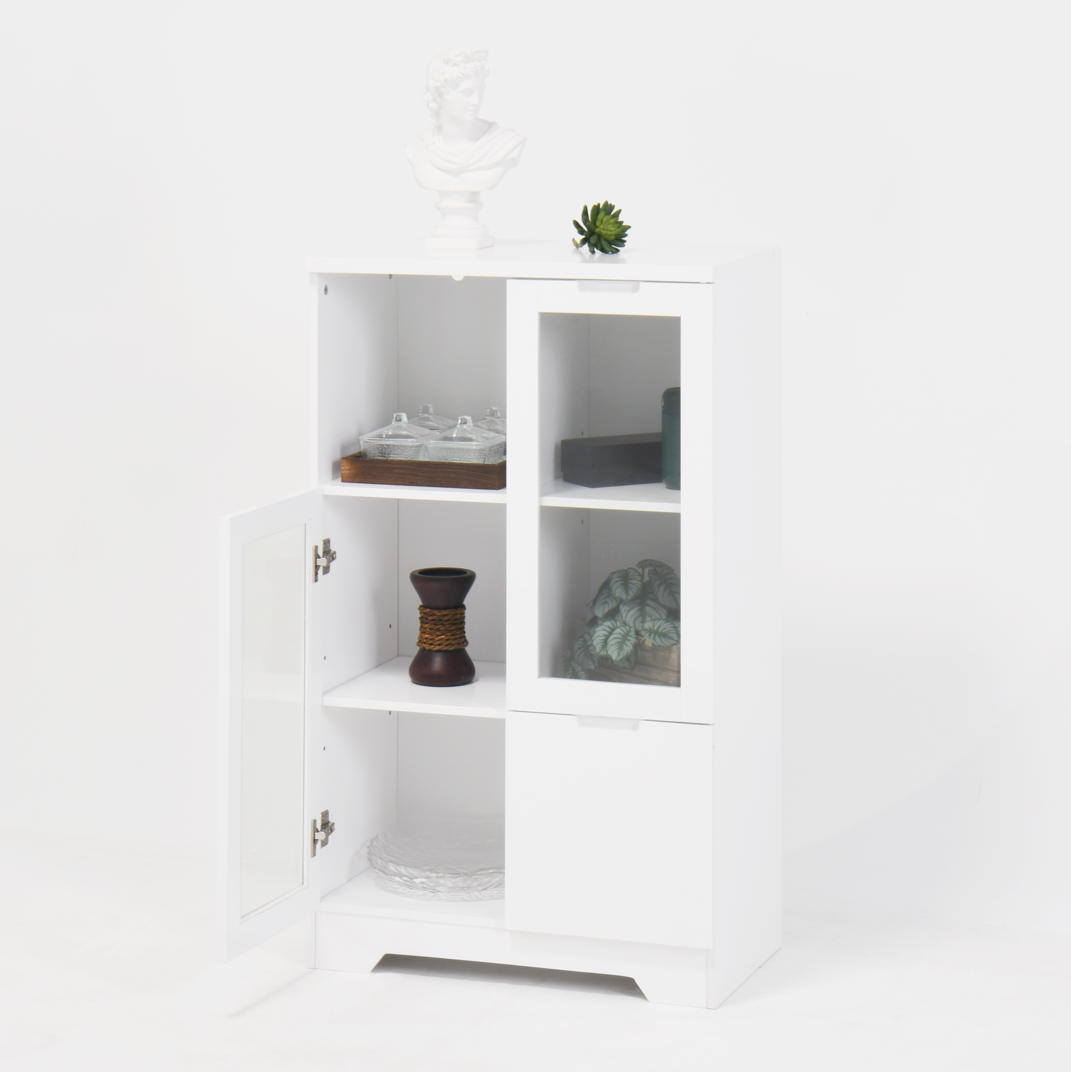 Home > MDF Painted Cabinet With Glass Doors And Drawer, Open Storage Space, White ,Bedroom, Living Room