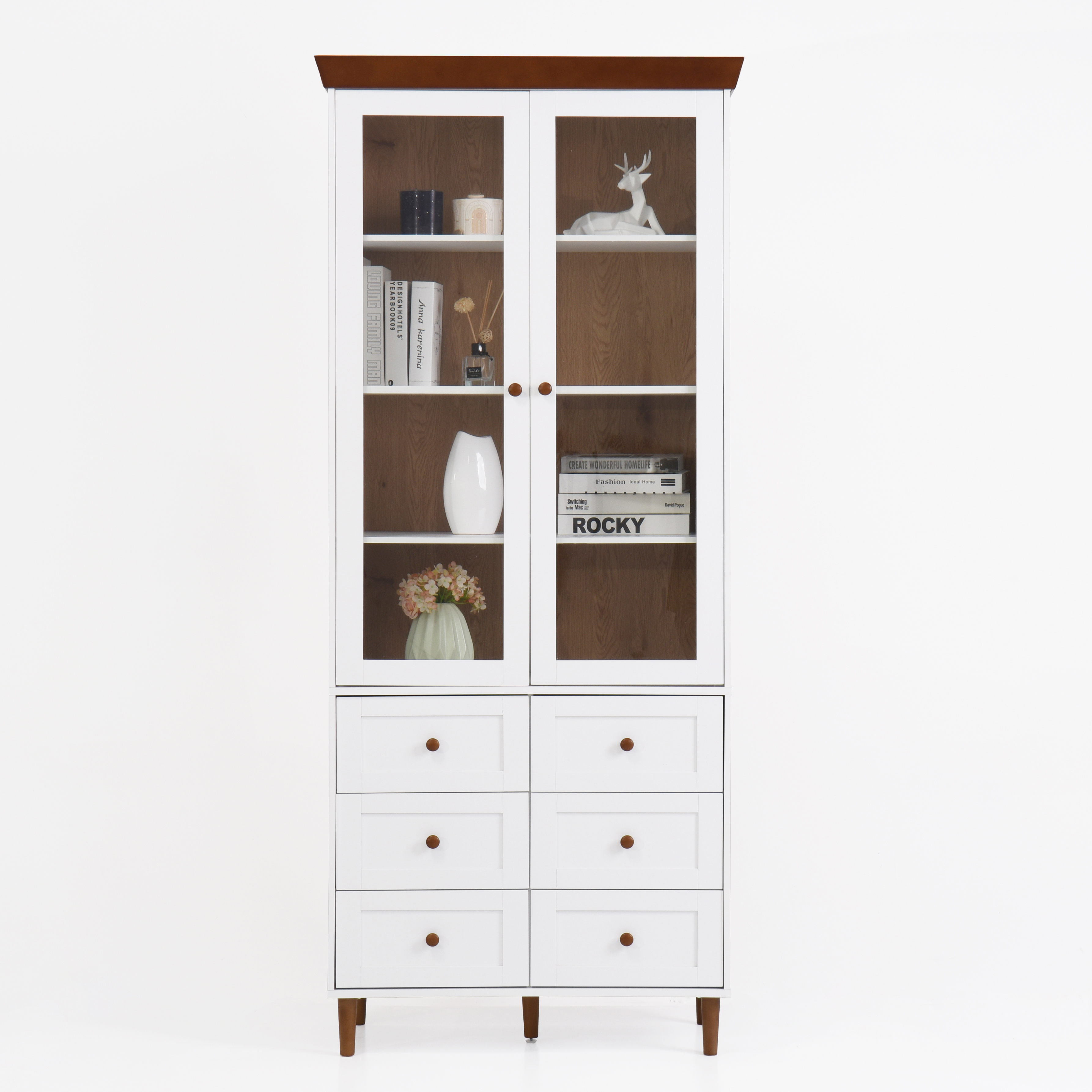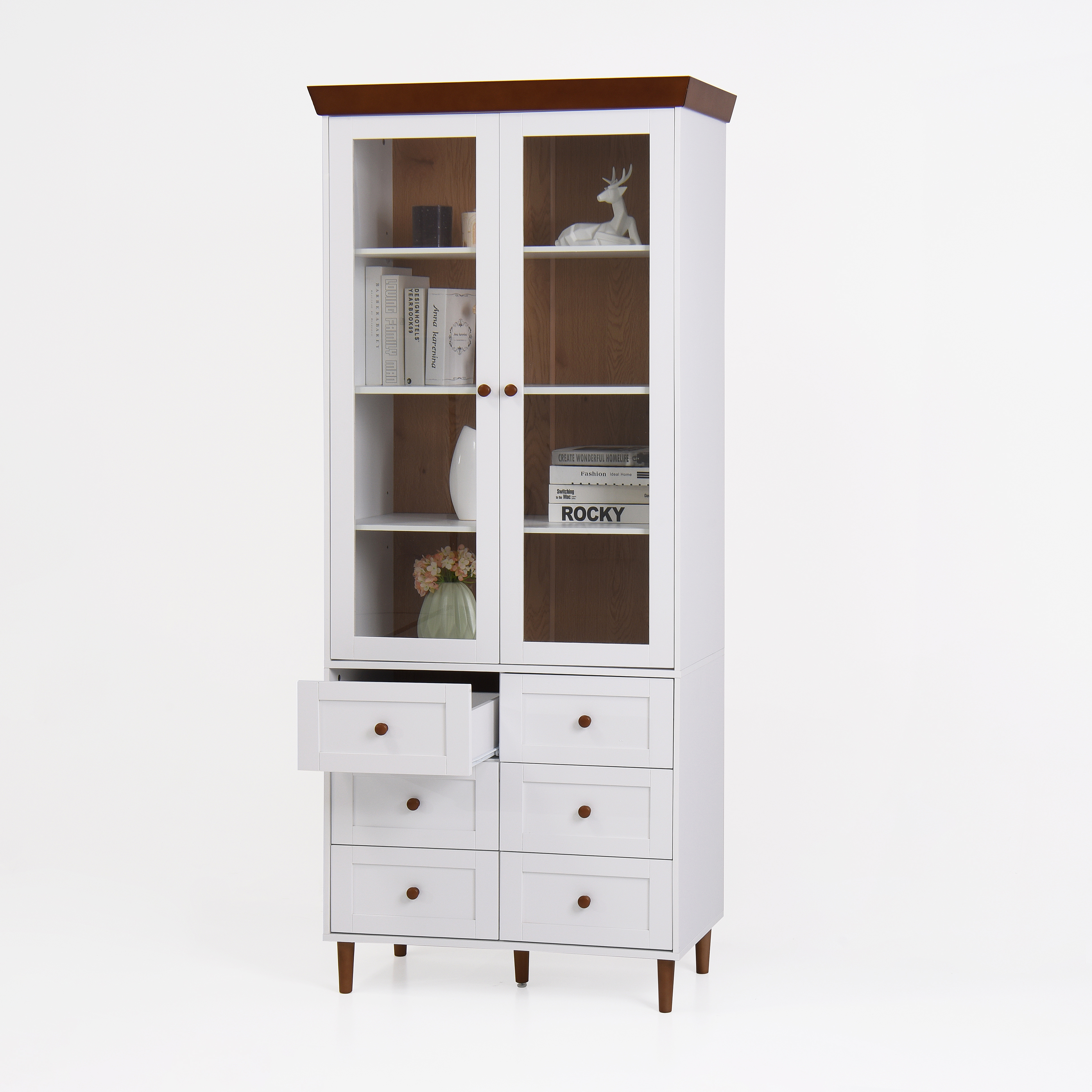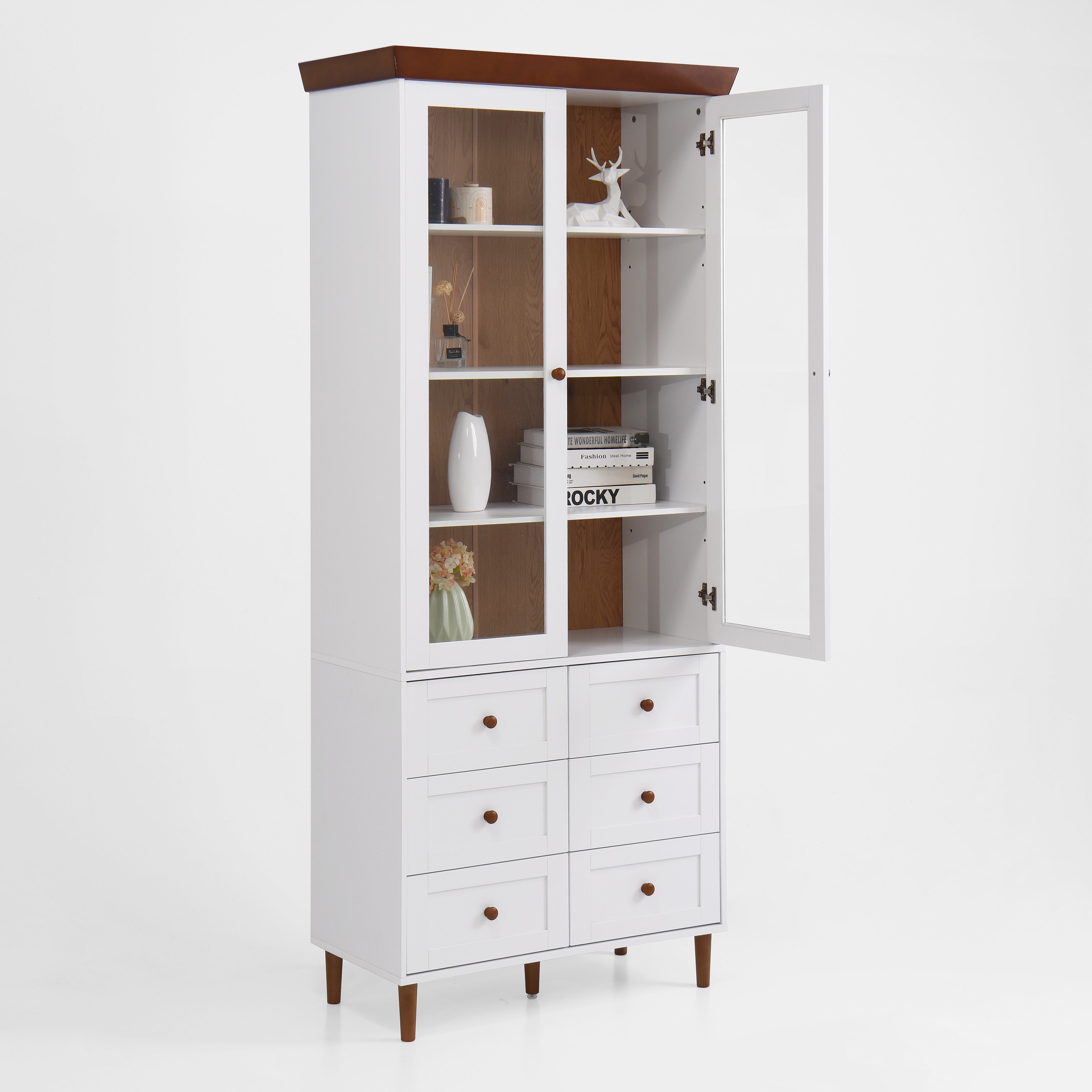 White MDF Display Storage Cabinet,Tall Kitchen Pantry Cabinets With Glass Doors And Adjustable Shelves,Freestanding Storage Cupboard For Kitchen, Livi