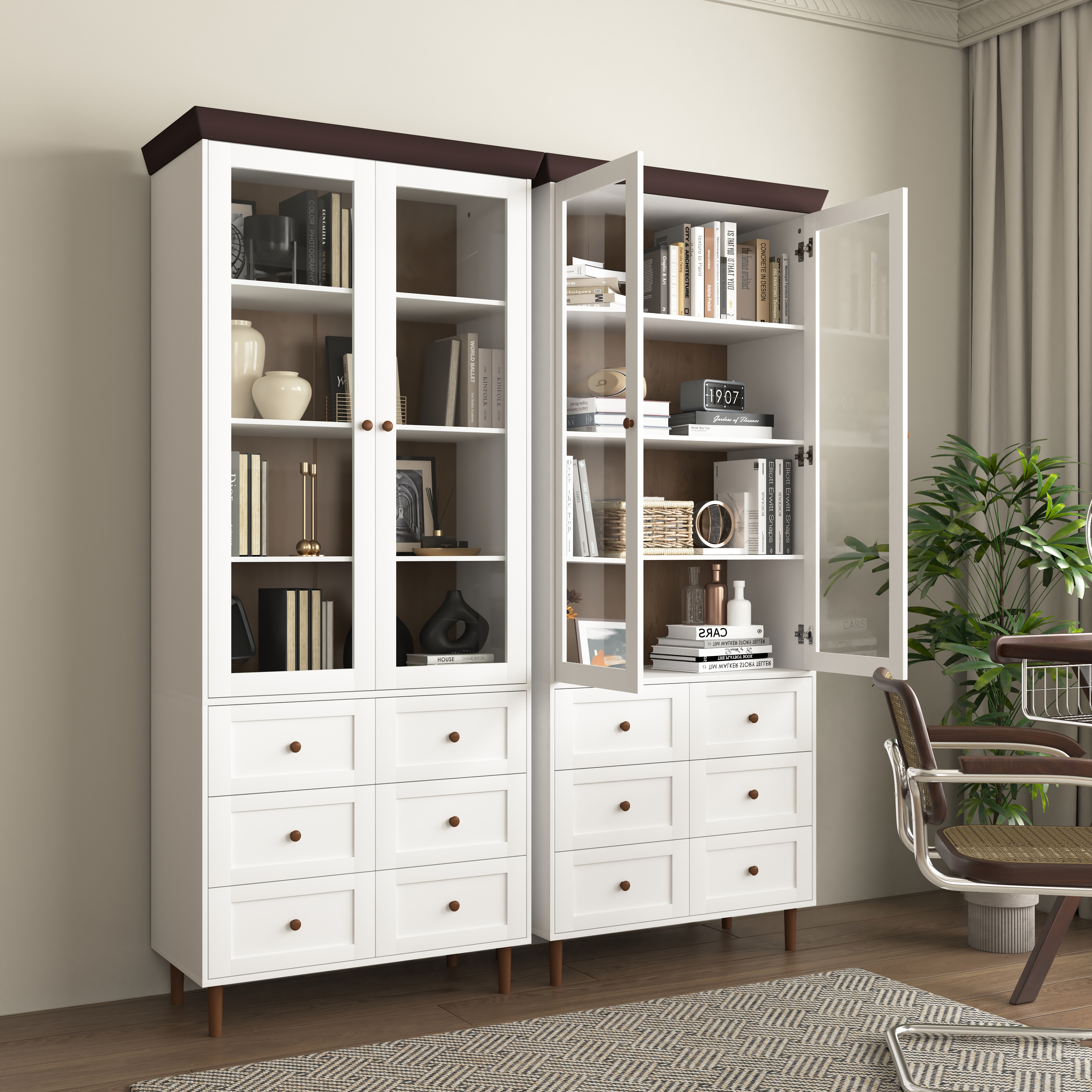 • Large Glass Door Design: The unique Glass door design not only adds a touch of elegance but also provides visibility to the stored items. Easily find what you need without opening the doors, saving you time and effort.
