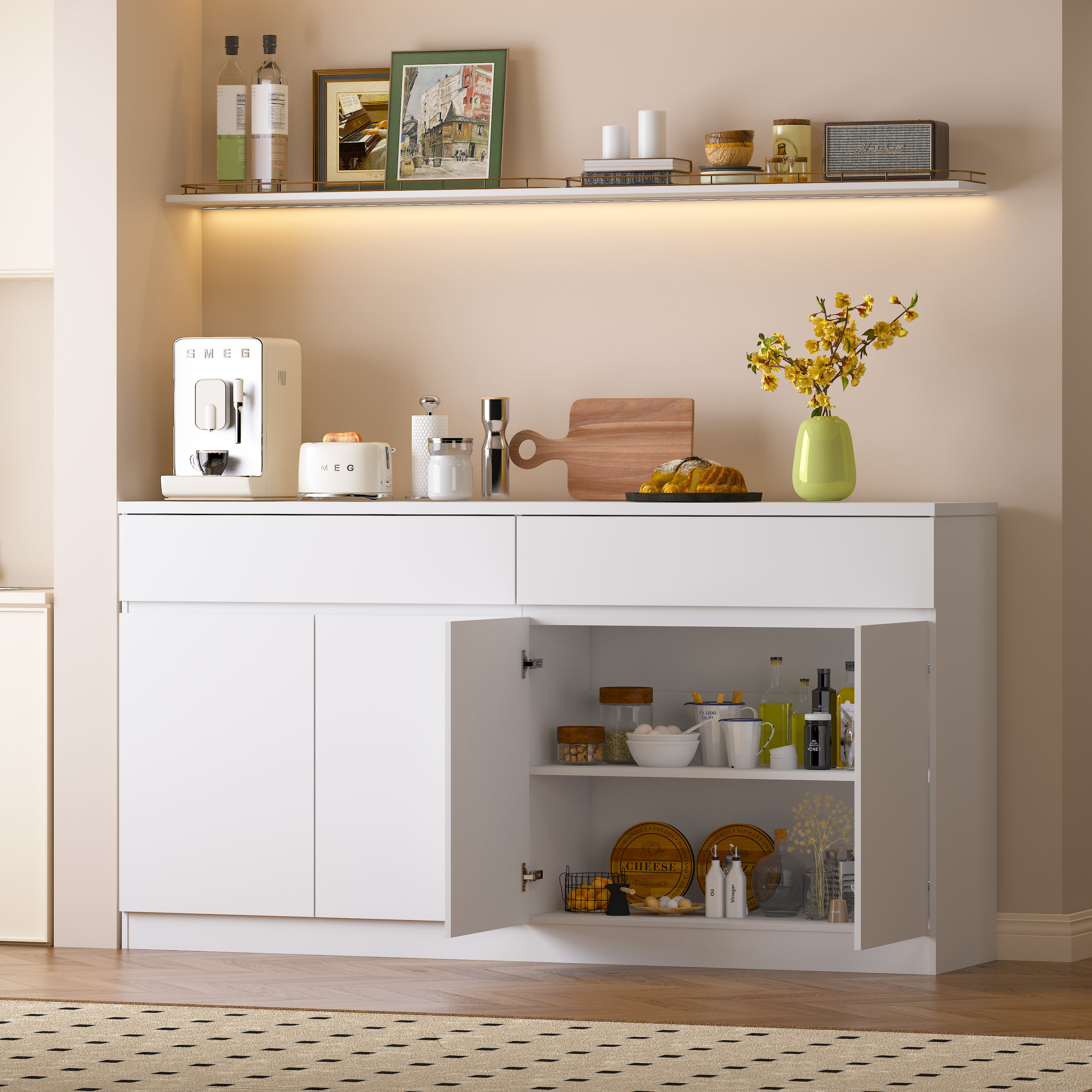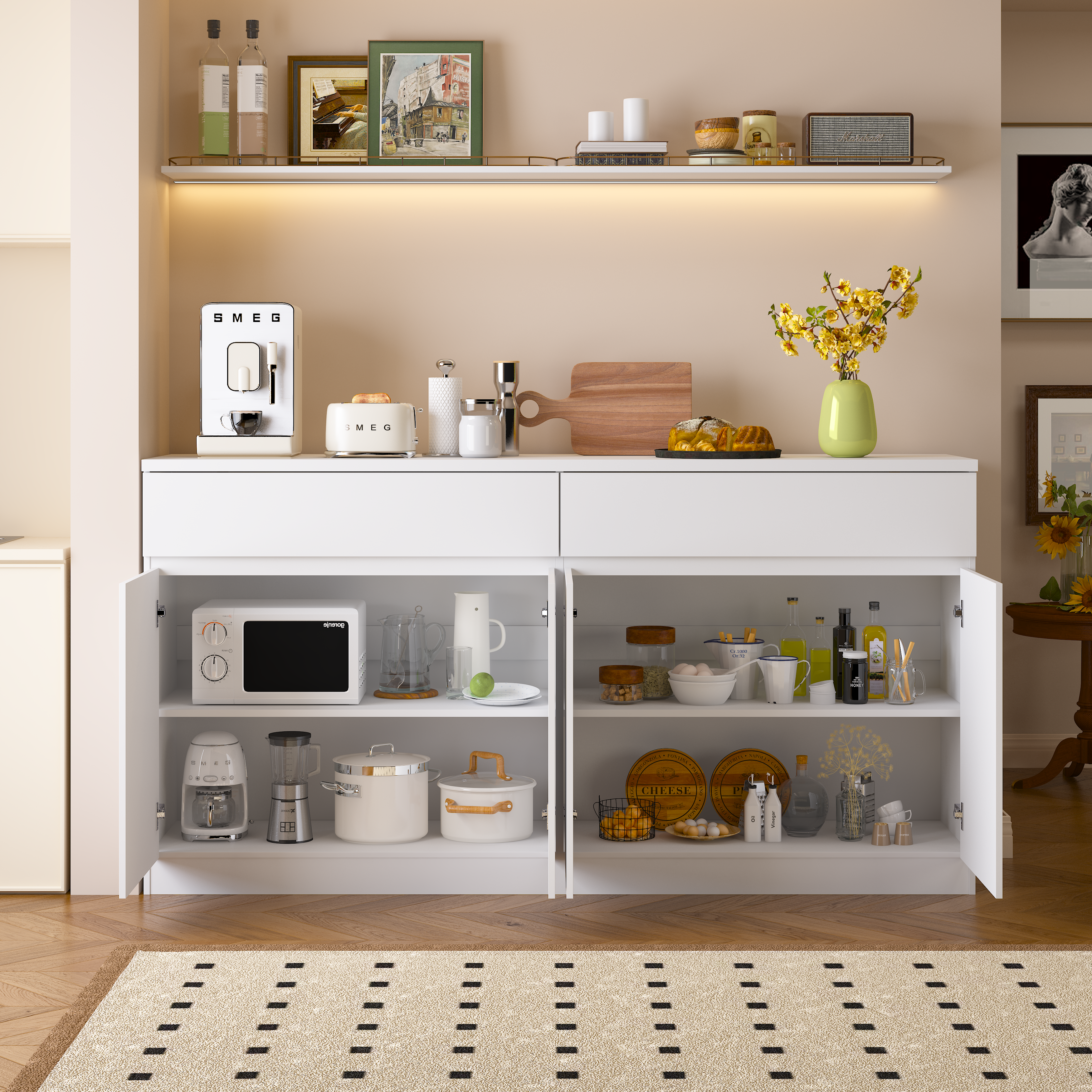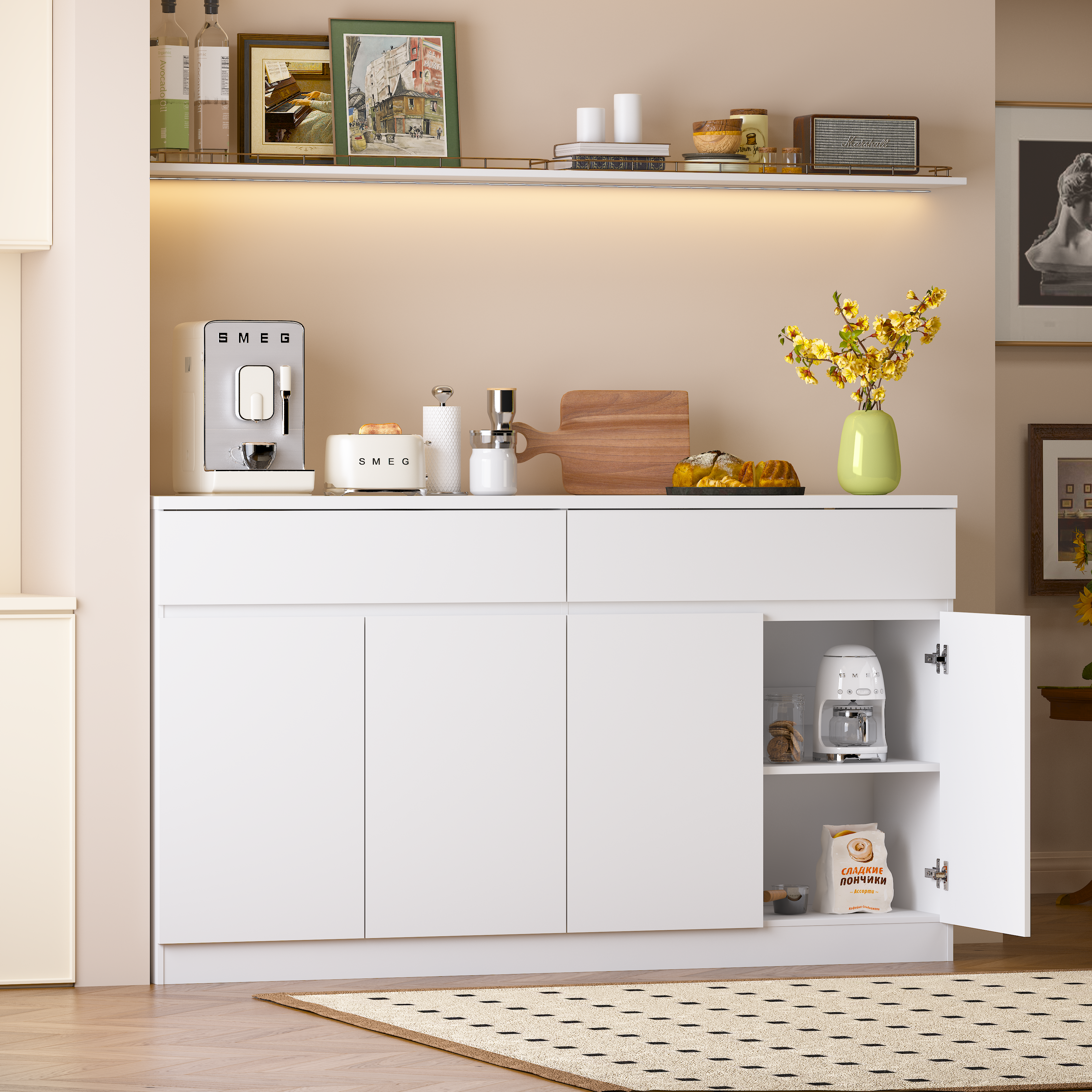 Product Name:Sideboard Buffet Cabinet with Storage,Large Kitchen Storage Cabinet with 2 Drawers and 4 Doors, Wood Coffee Bar Buffet Table for Kitchen Dining Room, White