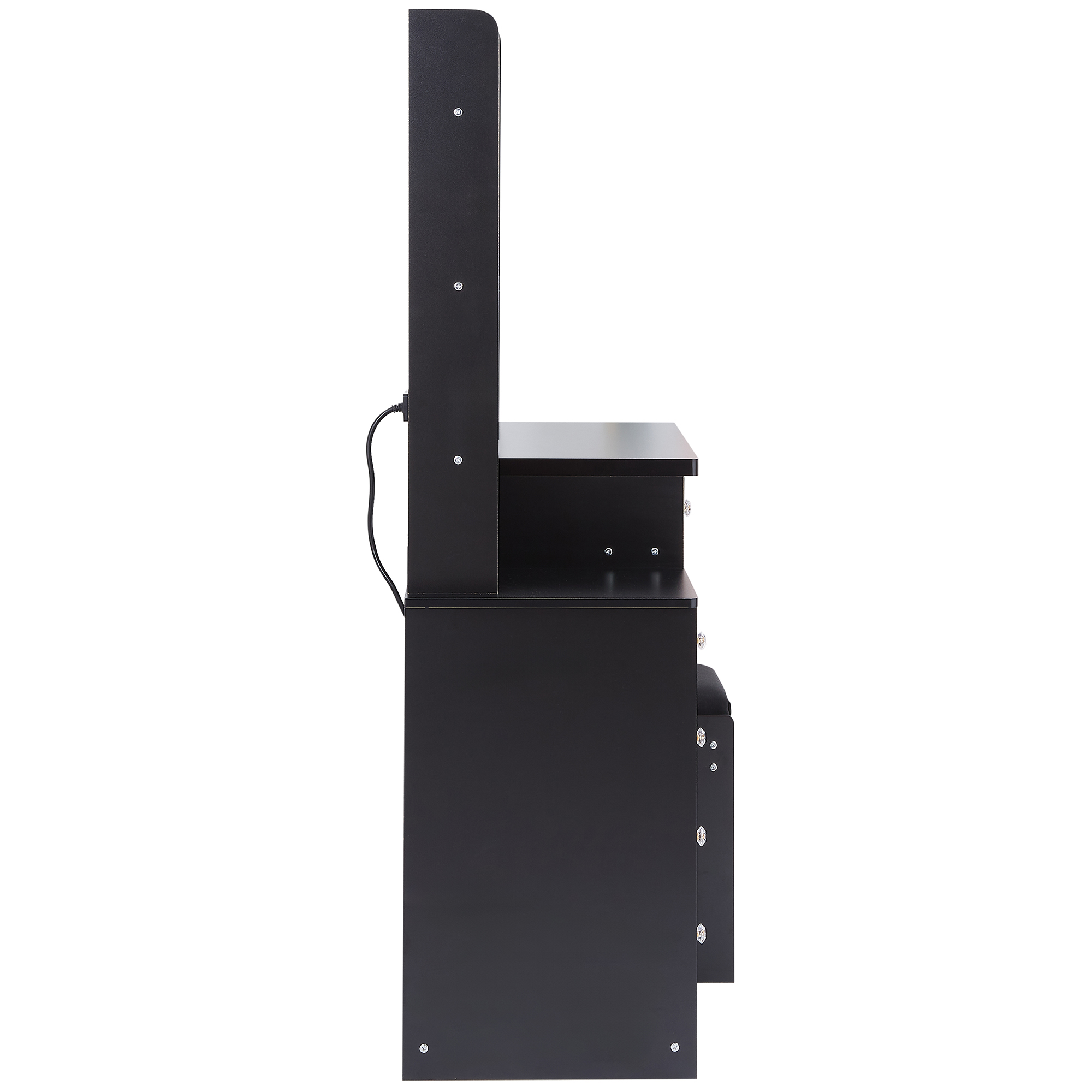 41 Large Size Left Bedside Cabinet Vanity Table Cushioned Stool Dresser Set, 2 AC 2 USB Power Station, Hair Dryer Stand, Extra Large Touch Control LED
