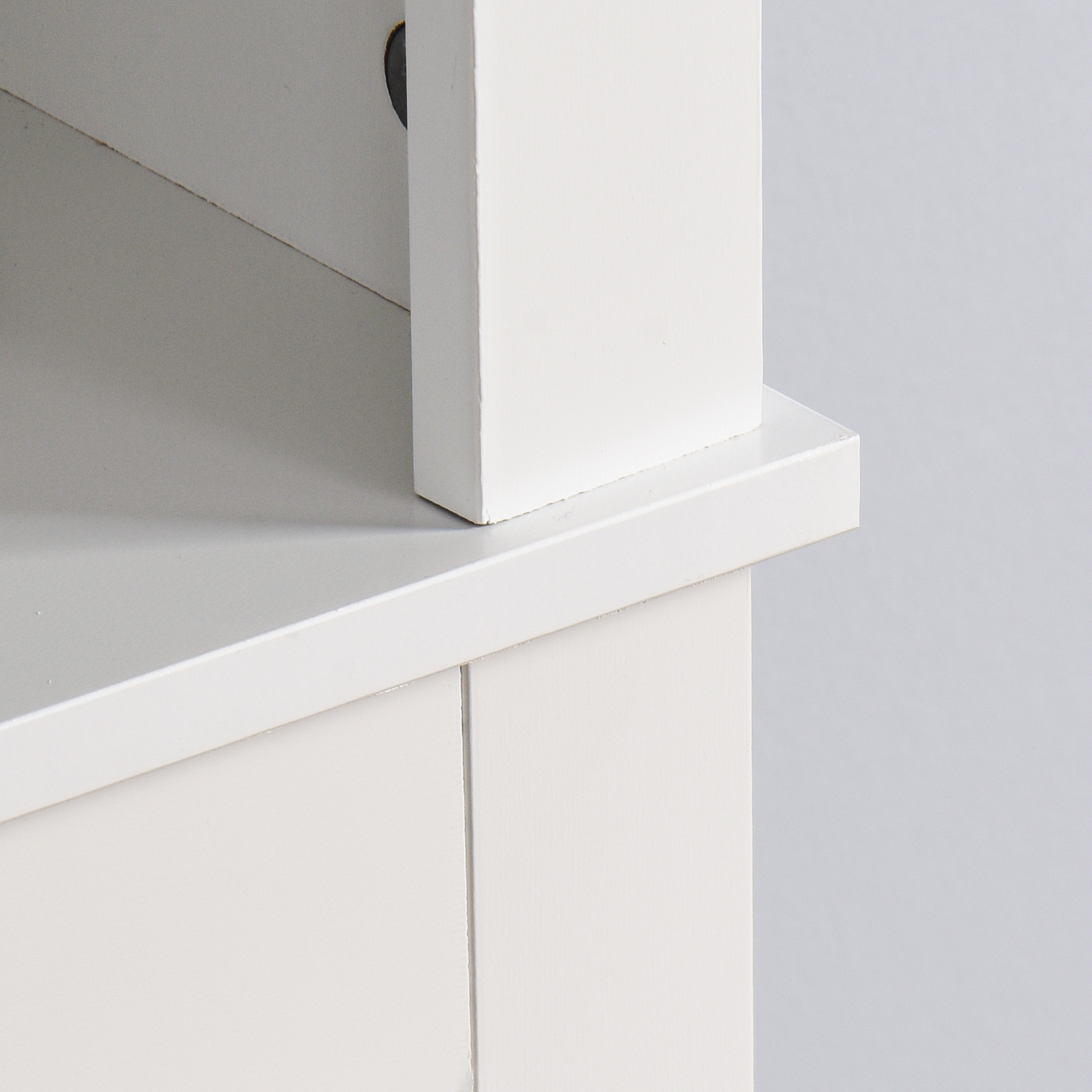 • PREMIUM MATERIAL: This bathroom cabinet over the toilet is constructed of high-quality engineered wood, adding style and charm with carved door panel and black knobs. The anti-toppling fitting can anchor to the wall for security and stability.