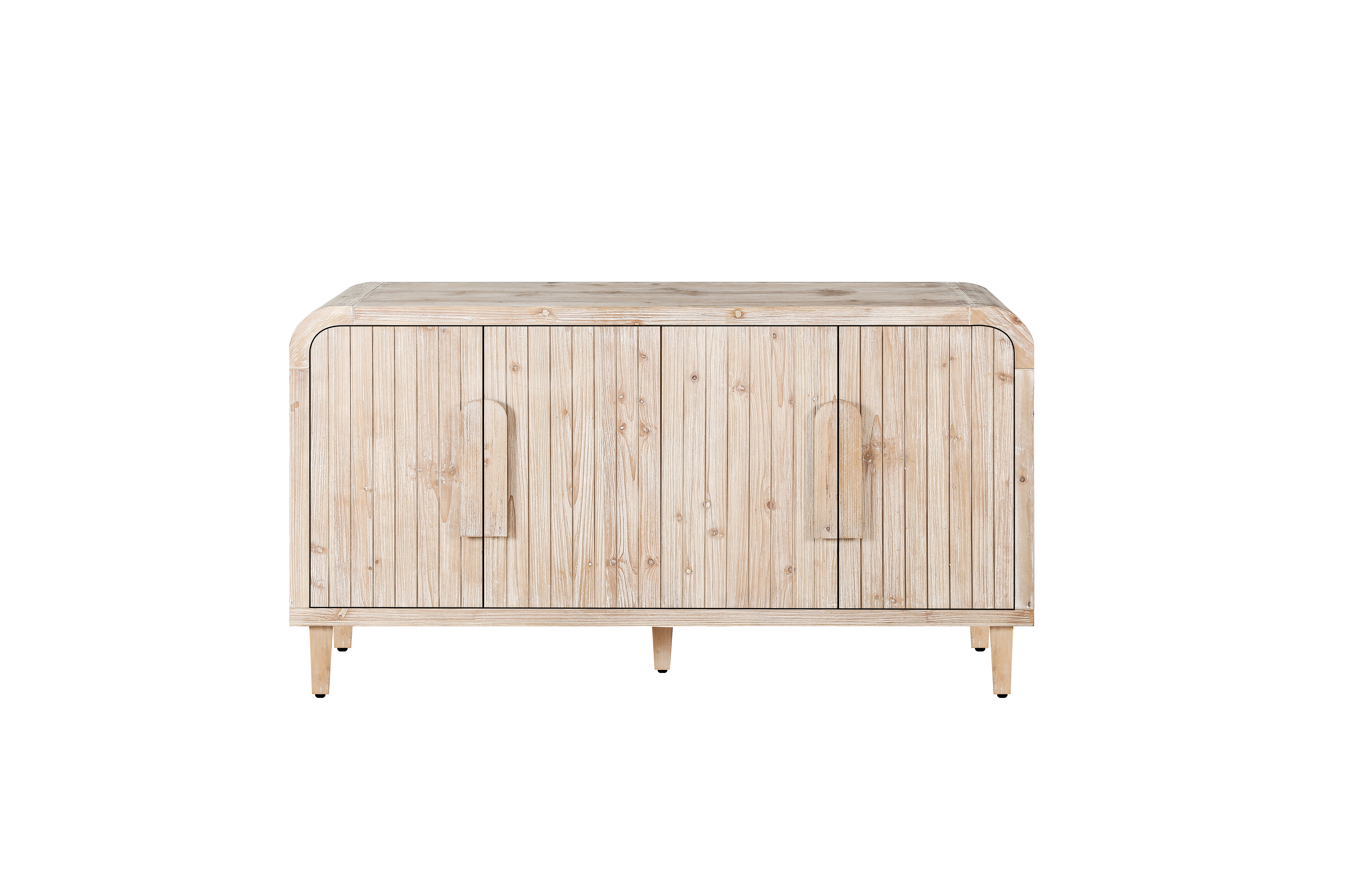 Product Name:59'' Farmhouse Curved Vintage Storage Sideboard with Large Wooden Handles, Vertical Wood Grain Carving and Adjustable Shelves for Kitchen,Dining Room (Natural Wood Washed)