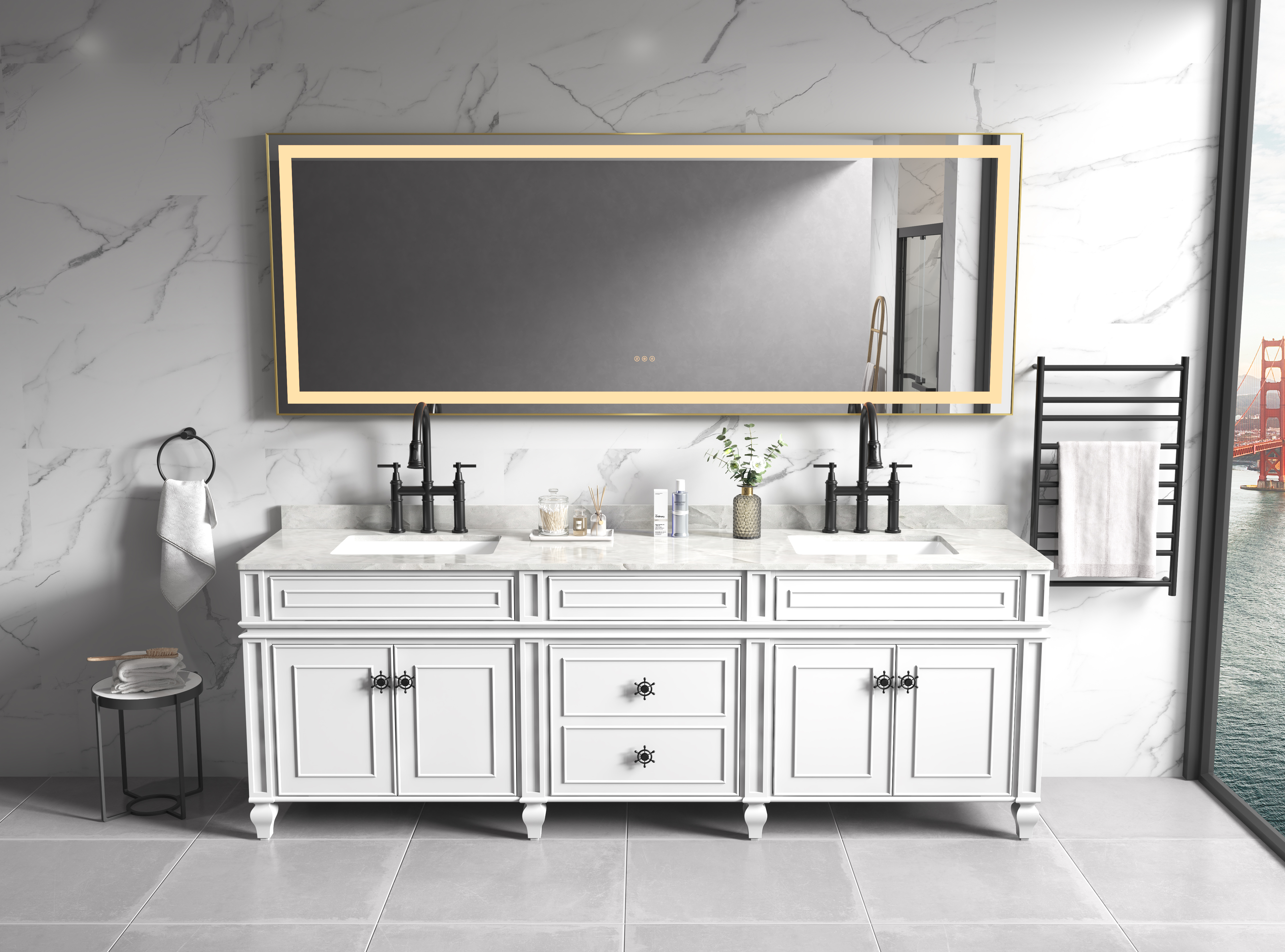 • LED bathroom mirror features an aluminum frame, making the mirror more exquisite and durable. The high-definition mirror surface ensures clear, undistorted reflections.