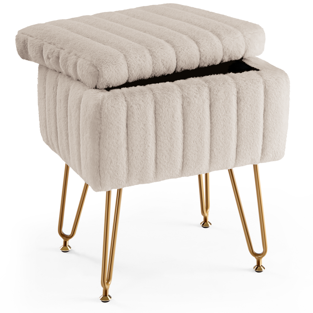Soft imitation fur seat, comfortable to sit on; paired with sturdy metal supports, with strong load-bearing capacity, stable and does not shake even when sitting for a long time.