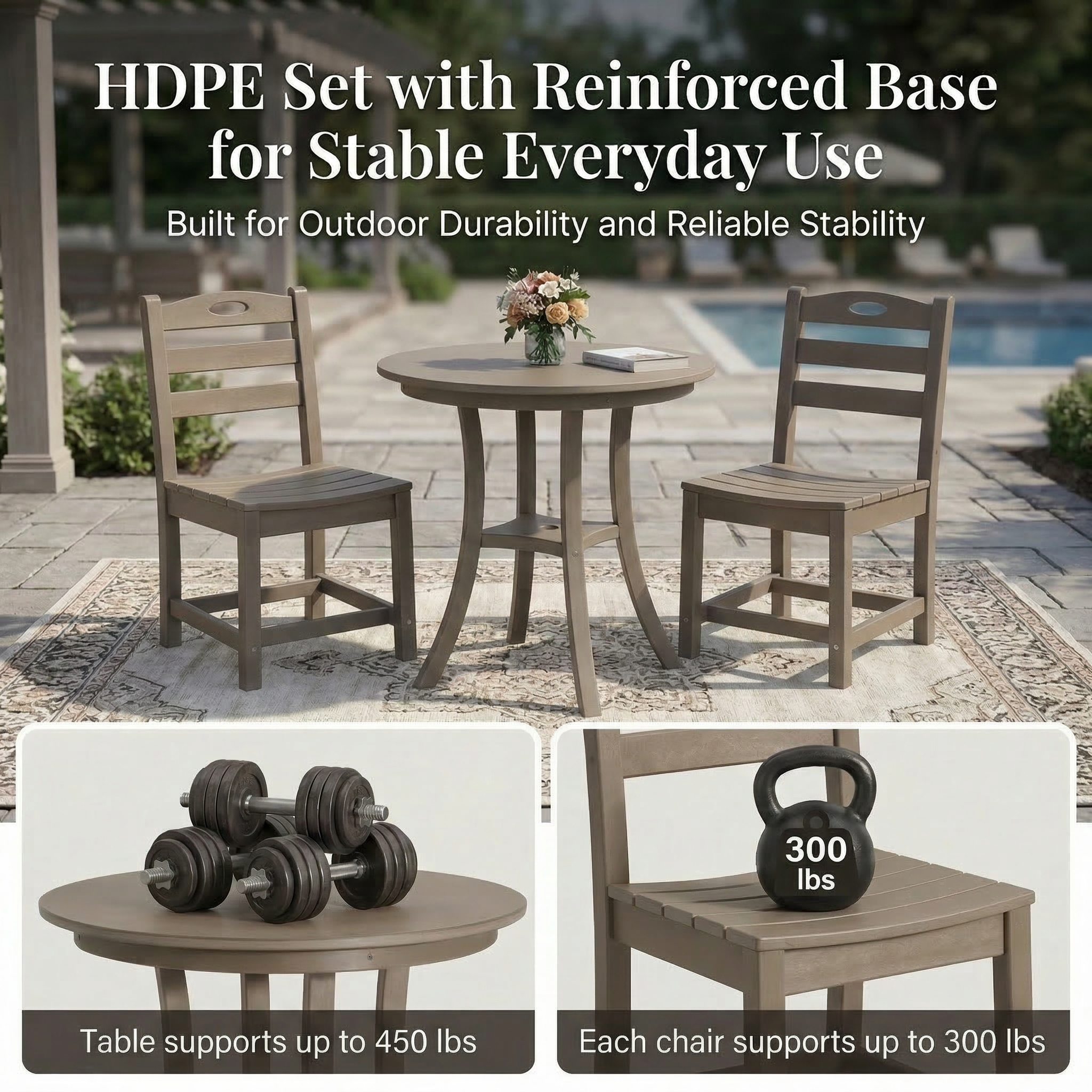 Product Name:Antique Brown 3-Piece Patio Bistro Set with Round Table and 2 Chairs