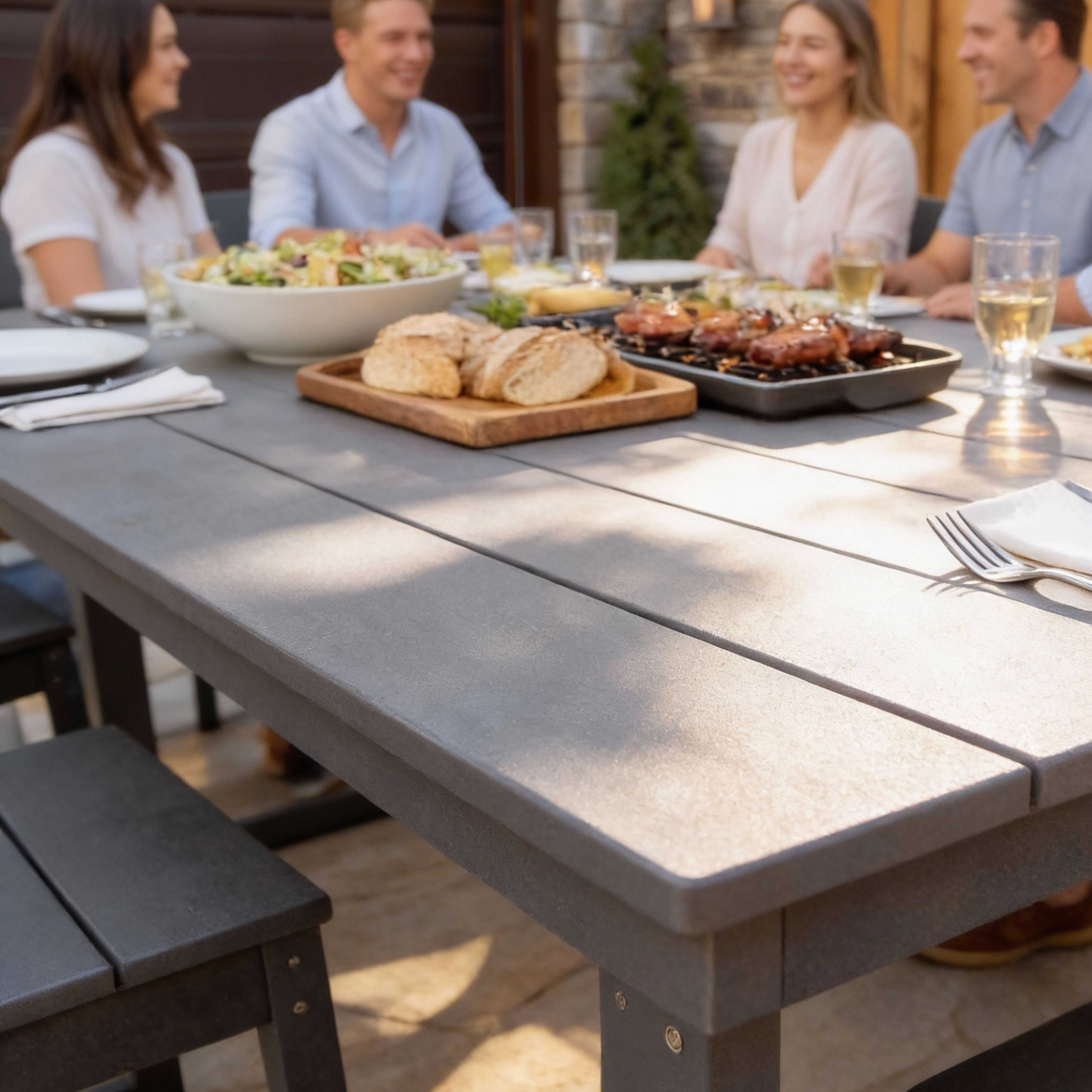 Home > 7-Piece HDPE Outdoor Dining Set - All-Weather Patio Table With Umbrella Hole & 6 Armless Chairs, Heavy-Duty, Low-Maintenance, Commercial-Ready Gray