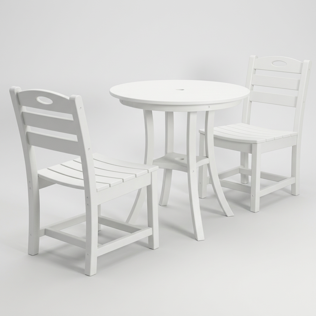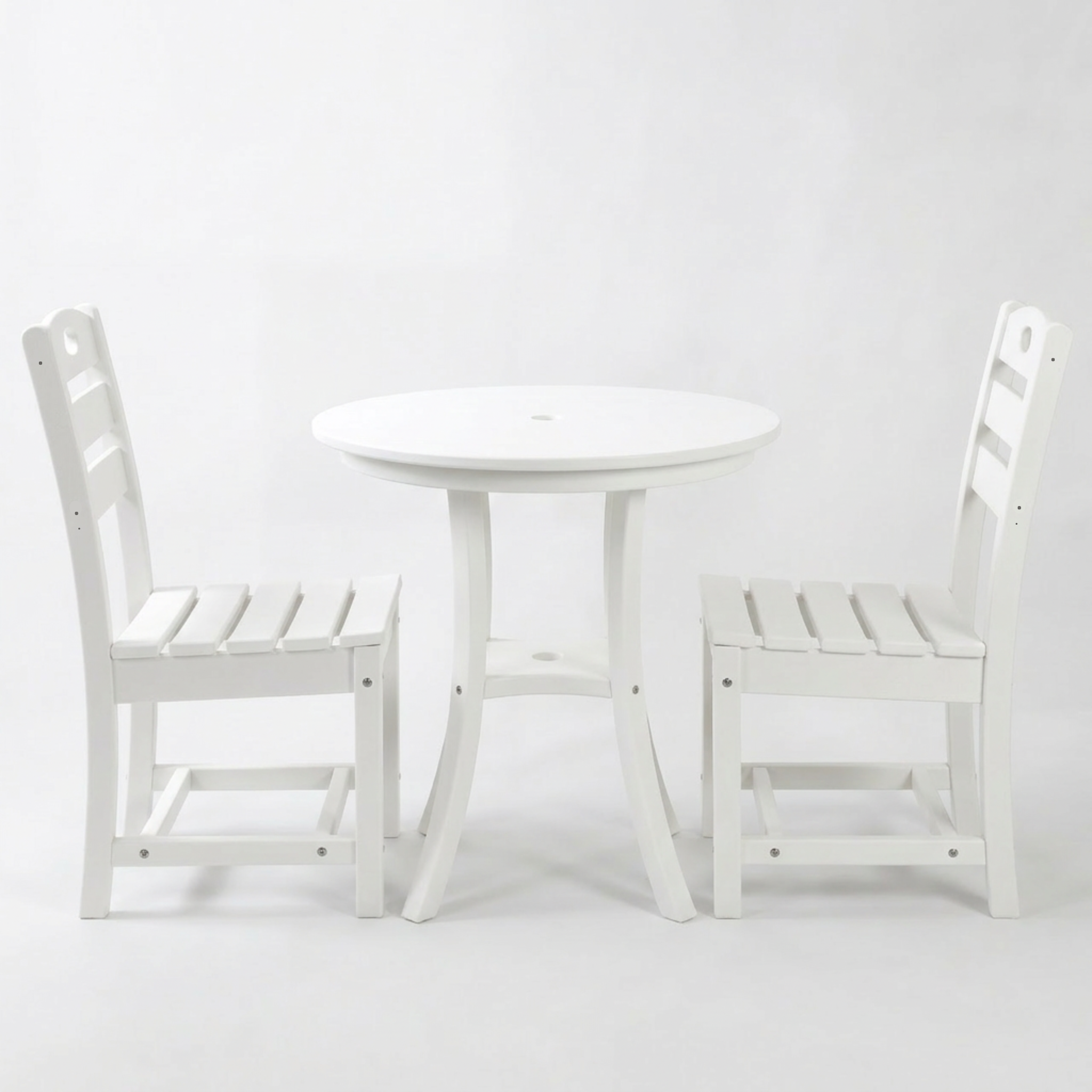 White 3-Piece Outdoor Bistro Set Round Table Set Patio Dining Set 2 Chairs