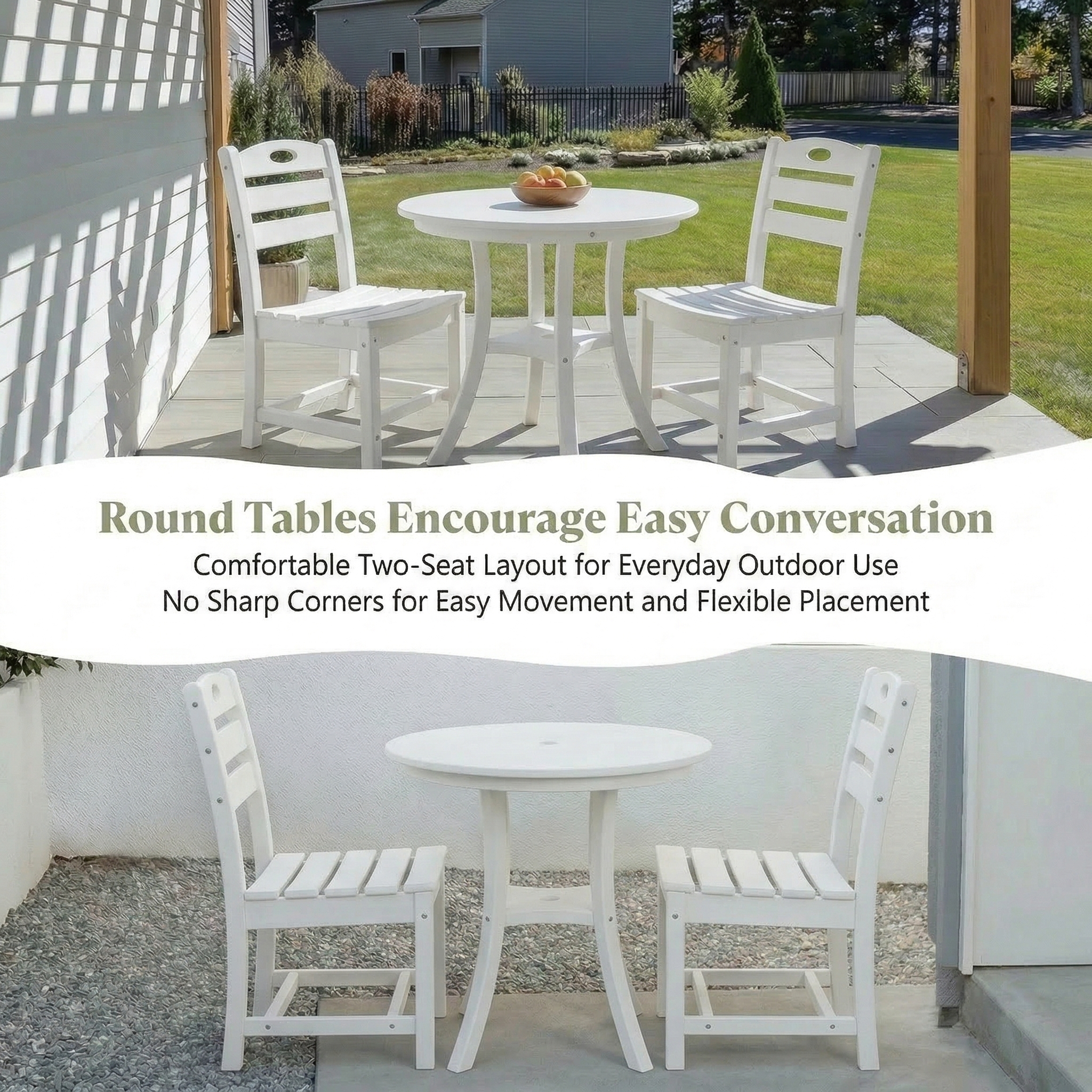 Product Name:White 3-Piece Outdoor Bistro Set / Round Table Set / Patio Dining Set / 2 Chairs