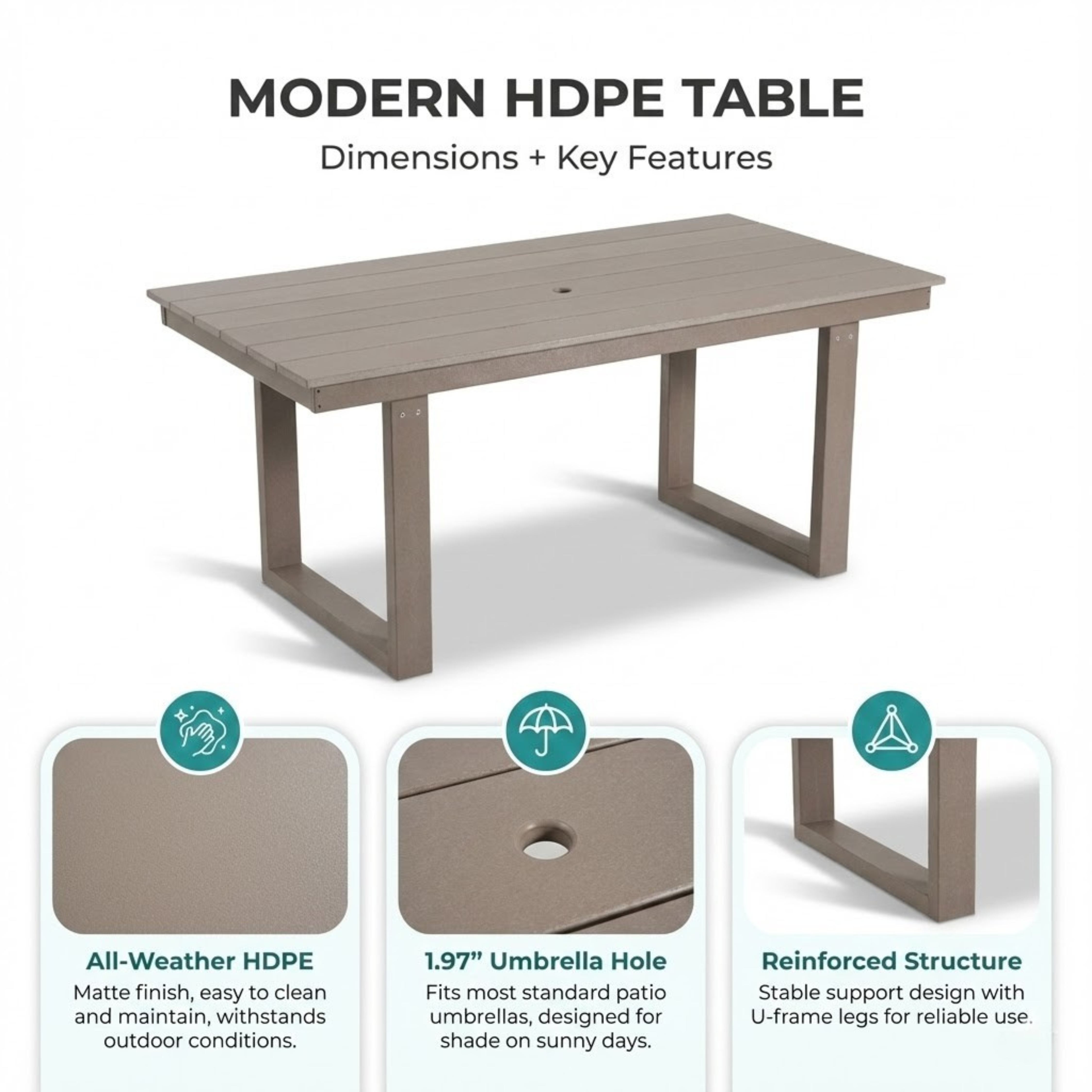 7-Piece HDPE Outdoor Dining Set For 6 - Weather-Resistant Patio Table With Umbrella Hole And 6 Armrest Chairs, Durable Garden Furniture For Backyard,