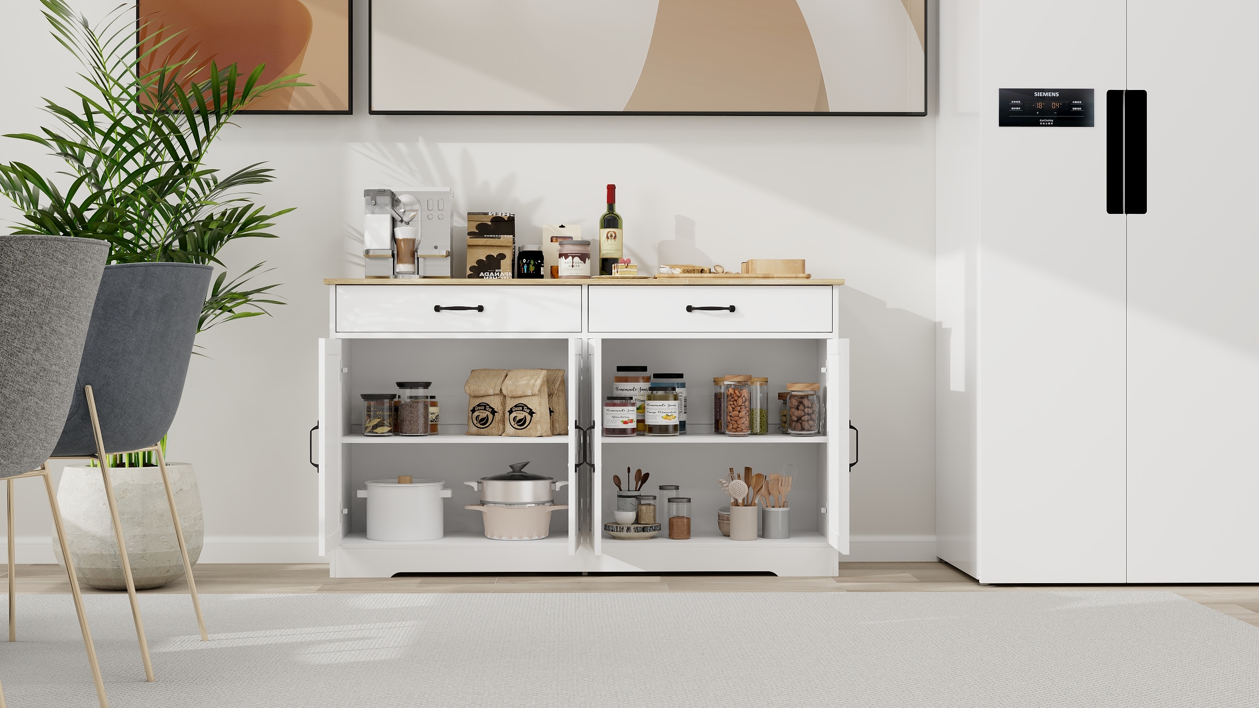 Home > 55.91 Large Farmhouse Buffet Cabinet Storage Sideboard With 2 Drawers And 4 Doors For Dining Living Room Kitchen Cupboard-White