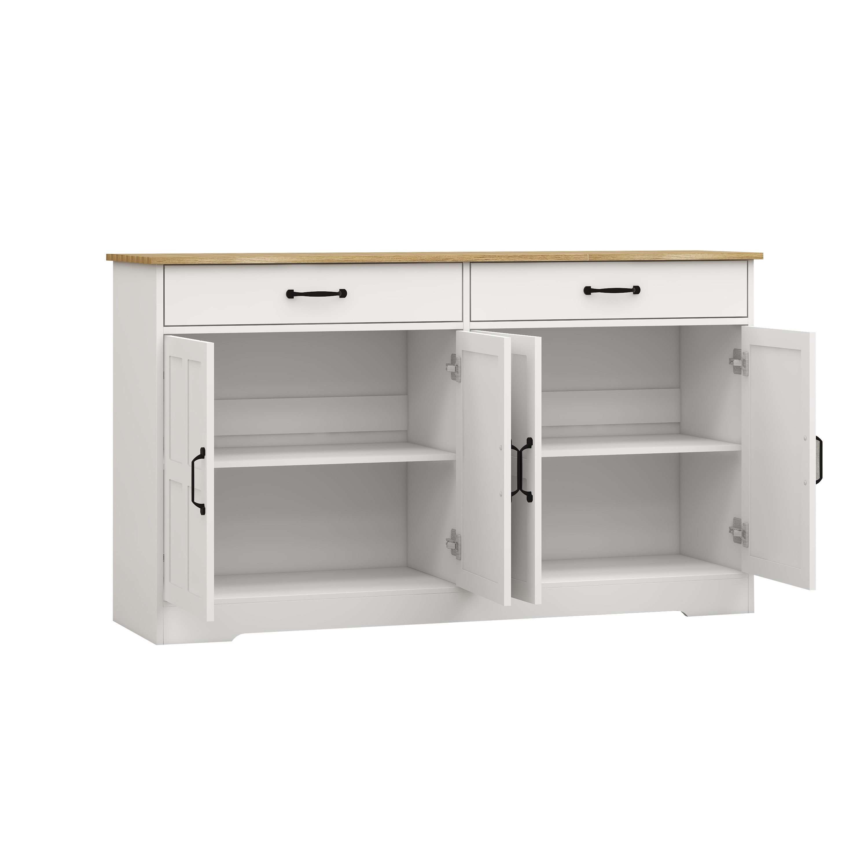 55.91 Large Farmhouse Buffet Cabinet Storage Sideboard With 2 Drawers And 4 Doors For Dining Living Room Kitchen Cupboard-White
