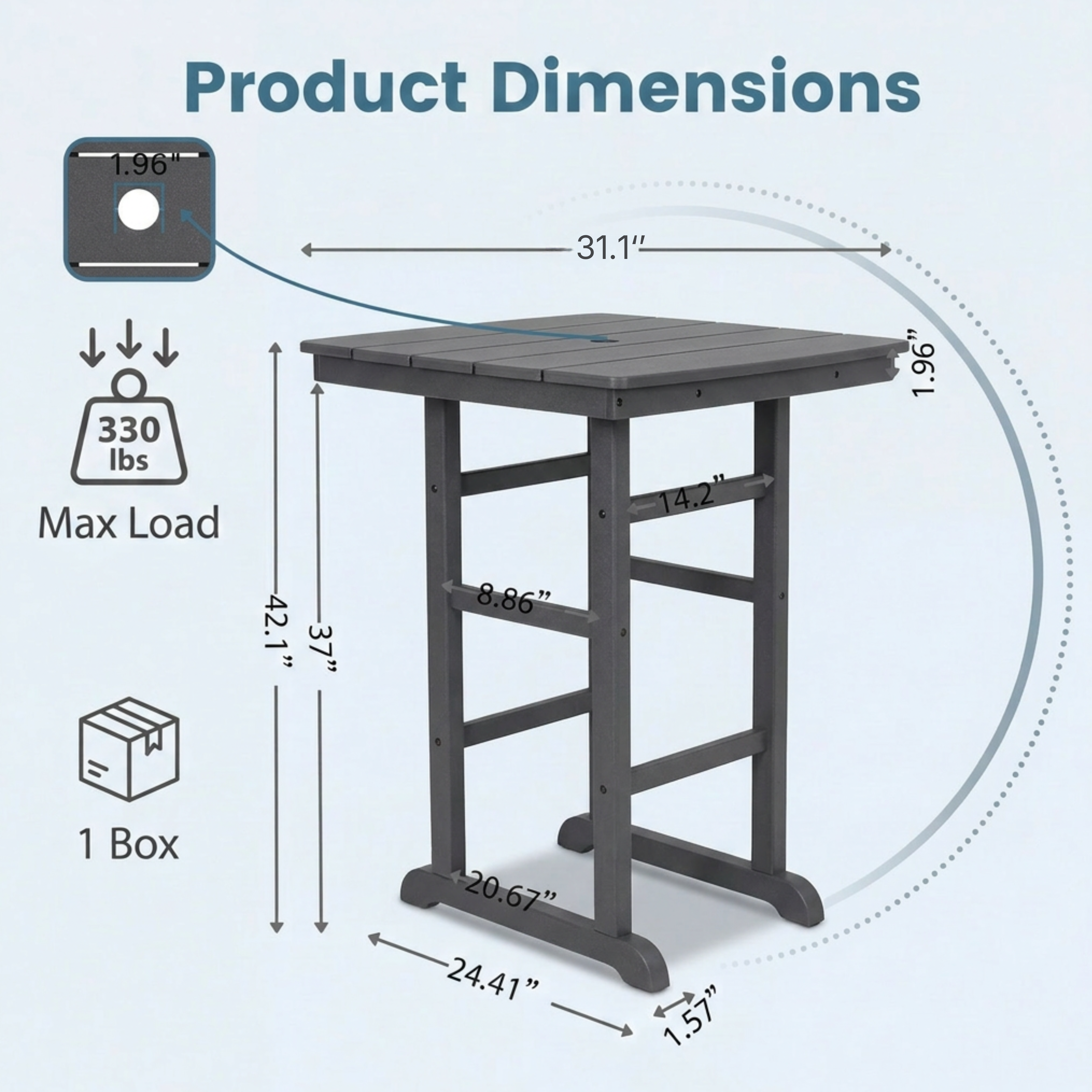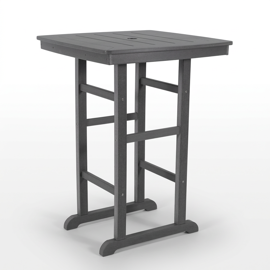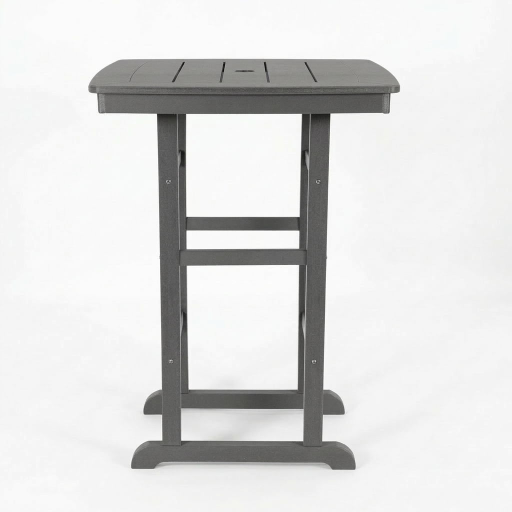 Product Name:HDPE Bar-Height Outdoor Patio Pub Table, 31.1" Square High Top Bistro Table with Umbrella Hole, Weather-Resistant Slatted Top, Gray