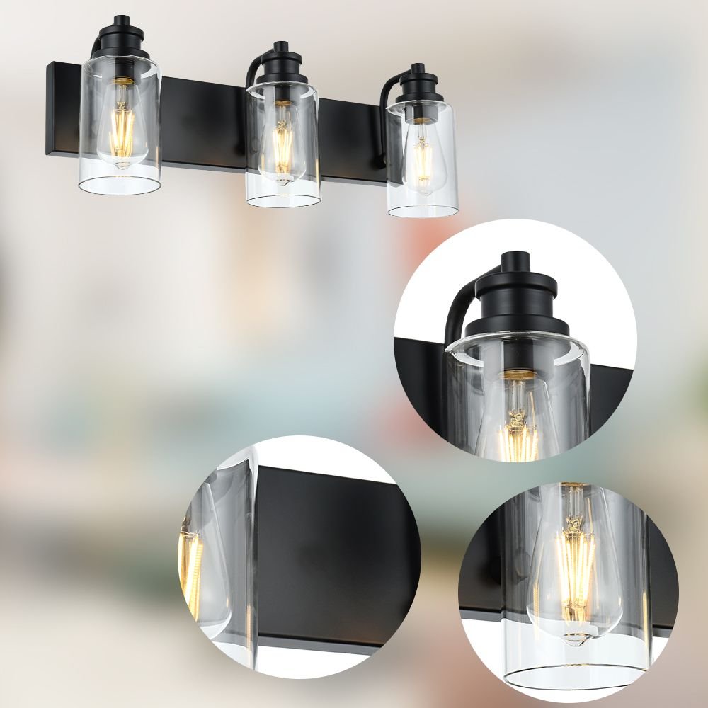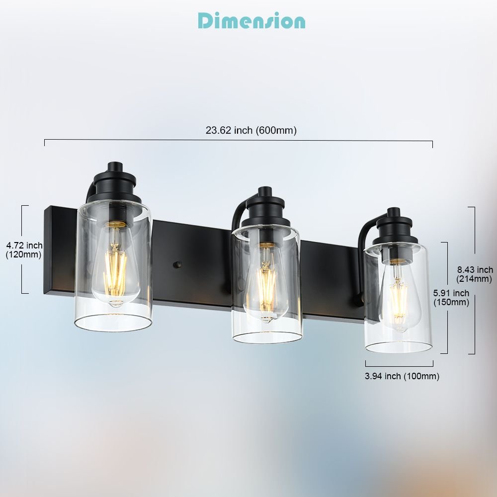 This 3-Light black bathroom light fixture is the perfect addition to any modern or farmhouse home decoration! Unlike other traditional design, this bathroom sconce wall lighting features an matte black backplate design. Crafted from the matte black lamp body with clear glass shades, they are ideal for adding a touch of style to your bathroom mirror, bedroom, living room, or dressing table. Good choices for home decoration!