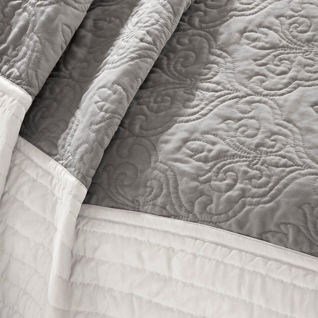 The Attingham 7 Piece Reversible quilt set is set in a black, ivory and grey, all working together to create this beautiful neutral colorway. The black and grey portions of the quilt have an intricate woven design that add dimension to this quilt. Made from 100% polyester, this quilt will keep be easy to care for and keep you cozy all year round.