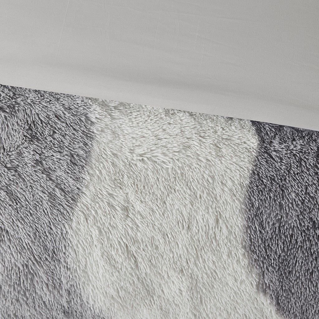 The Cassie shaggy faux fur comforter set showcases a unique, tonal wave striped pattern for an ombre look, and reverses to a soft grey color. This cozy comforter adds a fun and modern update to your bedroom, while coordinating shams (1 in Twin/Twin XL) complete the bedding set. The hypoallergenic polyester comforter filling contains no allergens and is treated to be dustproof. Sham set will vary in ombre colors. This machine washable comforter set is also OEKO-TEX certified, featuring an antimicrobial treatment on the reverse, which keeps the bedding fresher longer.