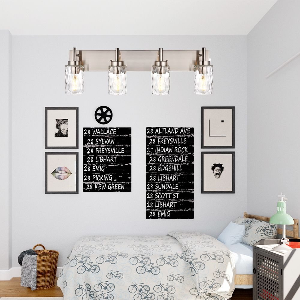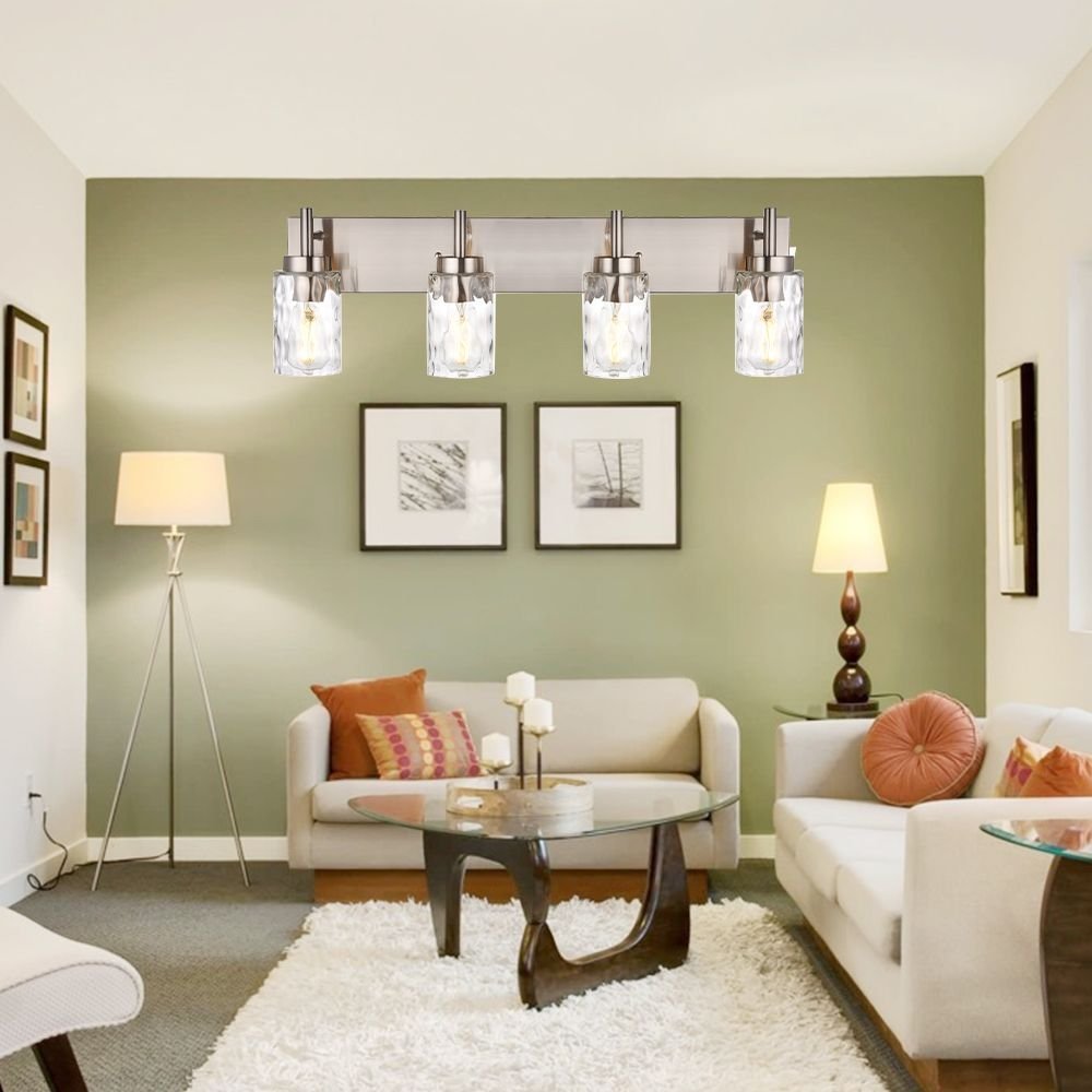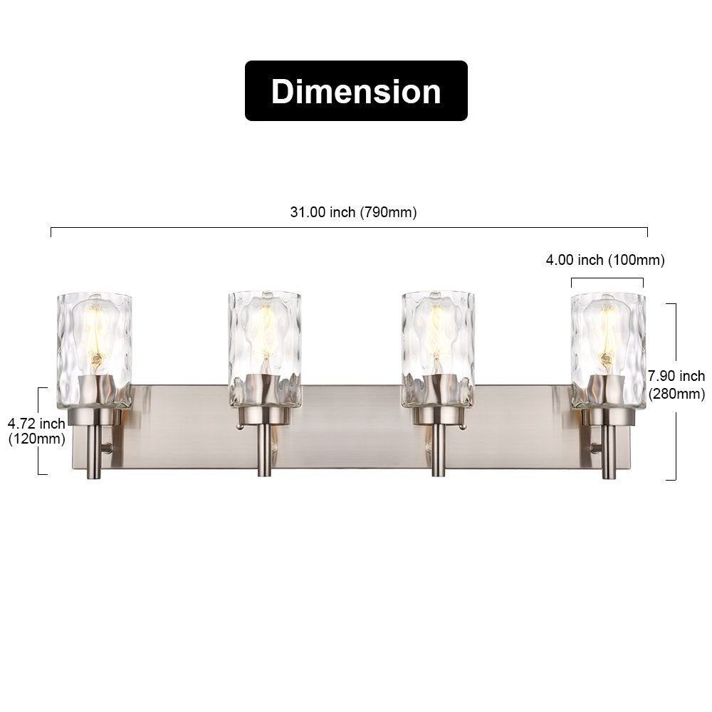 Modern & Unique Design:This 3-light wall vanity light fixture brushed nickel has clear hammered glass shades and a rich finish that creates a farmhouse look in your space.The glass shades bring a refined vintage feel to any room and simple yet elegant metal finish with clear hammered glass shades lends itself to placement in a bathroom, entryway, or dining room, bringing a modern farmhouse vibe to space.It can be mounted in the up or down position.