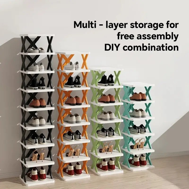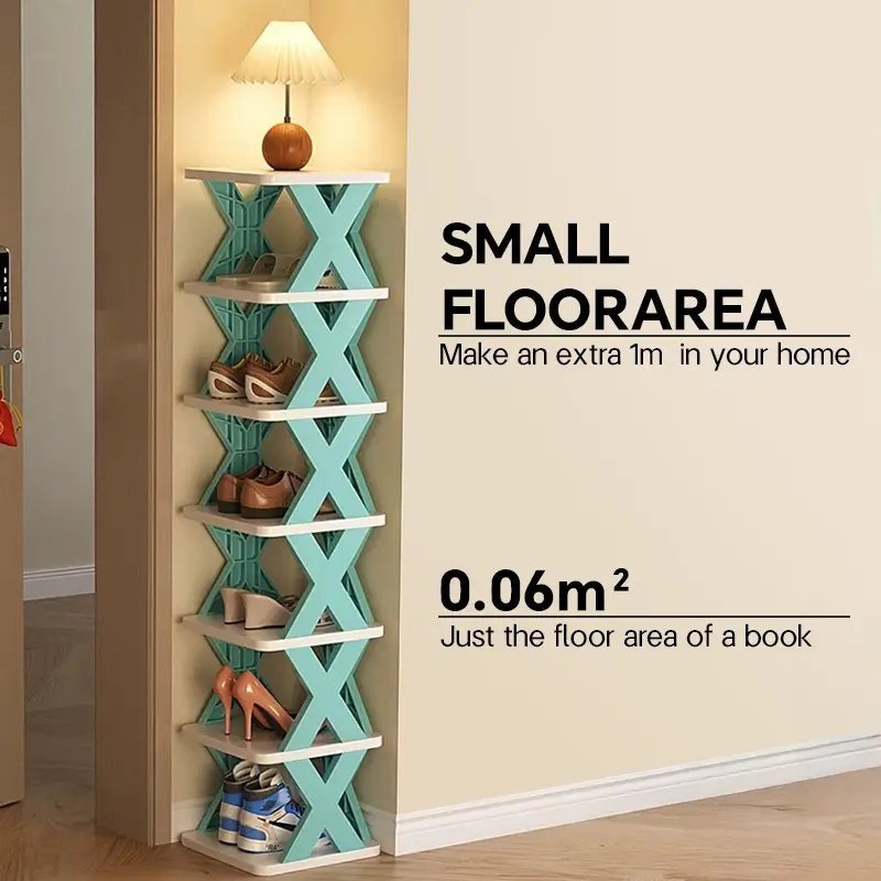 This ultra-slim vertical shoe rack holds up to 9 pairs of shoes while occupying minimal floor space. Perfect for tight areas like entryways, closets, dorms, or bathrooms, its stackable design adapts to your storage needs.