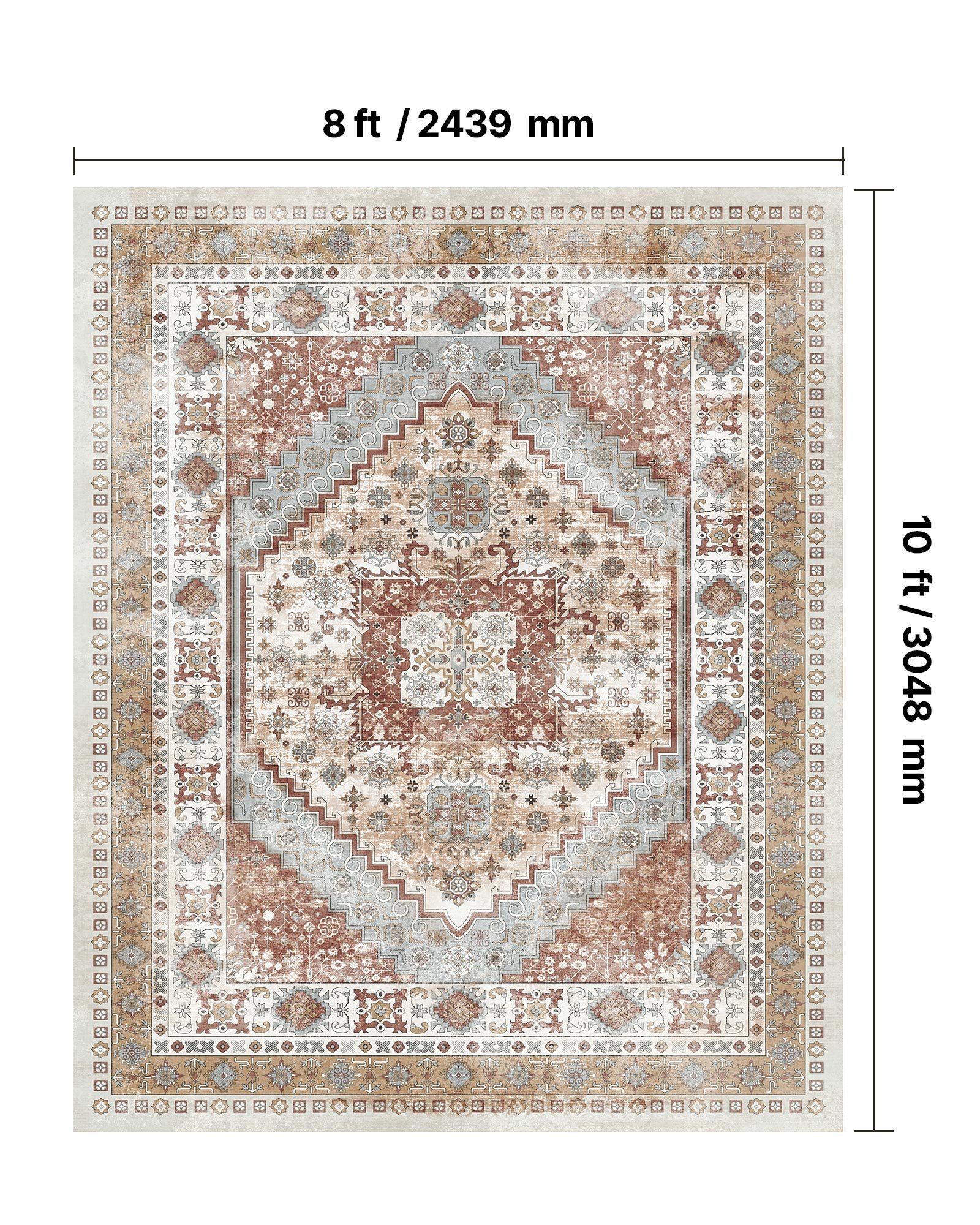 VEVOR Area Rug, 8 x 10 ft Large Washable Rug, Non-Slip and Tear-Resistant Soft Carpet, Pet & Child Friendly Vintage Area Rugs, Indoor Mat for Bedroom